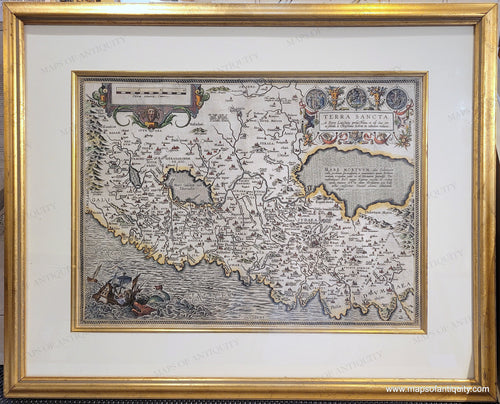 1586 - Holy Land - Terra Sancta : a Petro Laicstain perlustrata, et ab eius ore et schedis a Christiano Schrot in tabulam redacta - Genuine Antique Map, Framed