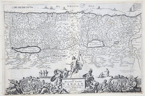 1682 - Holy Land at the Time of Christ - Het Beloofde Landt Canaan door wandelt van onsen Salichmaecker Iesu Christo, neffens syne Apostelen. - Antique Map