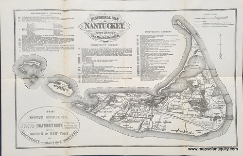 1910 - Map of Marthas Vineyard and Nantucket Islands - Antique Railroad Map