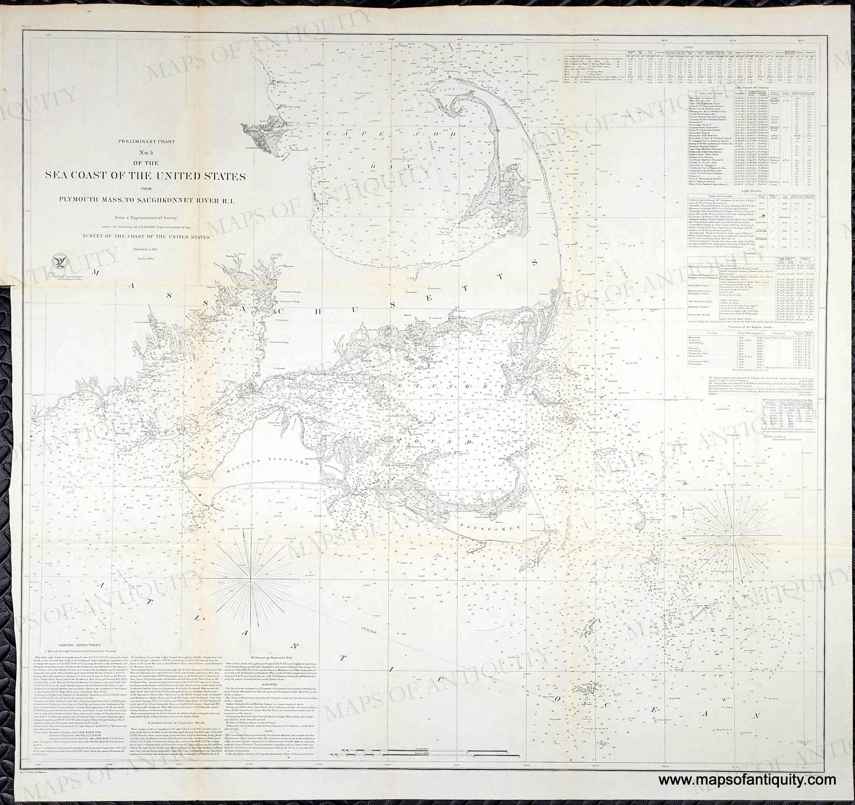 Genuine-Antique-Chart-Preliminary-Chart-No-4-of-the-Sea-Coast-of-the-United-States-from-Plymouth-Mass-to-Saughkonnet-River-RI-1857-USCS-Maps-Of-Antiquity