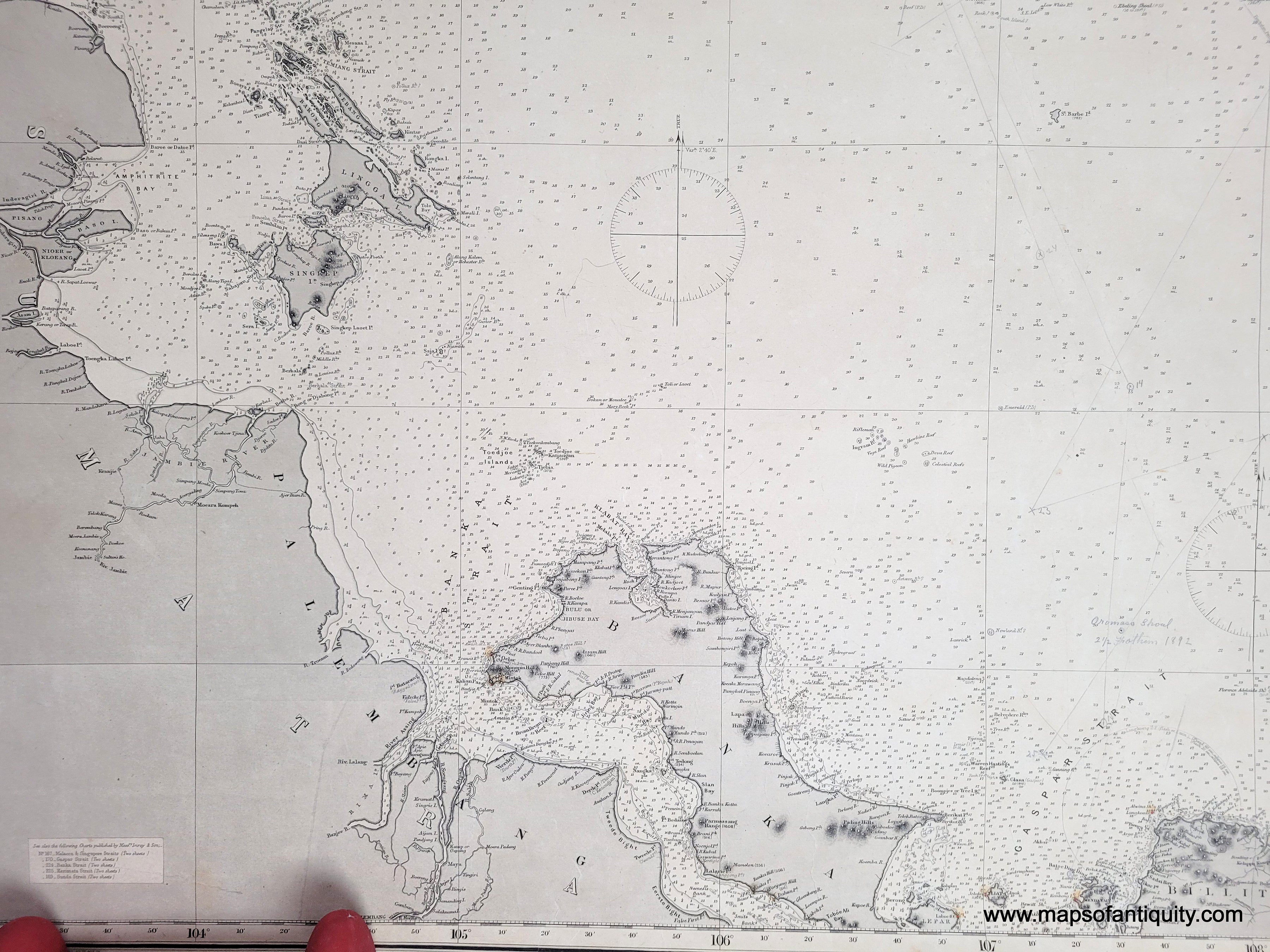 1889/1890 - East India Archipelago, Western Route to China, No. 2 [Singapore] - Genuine Antique Chart