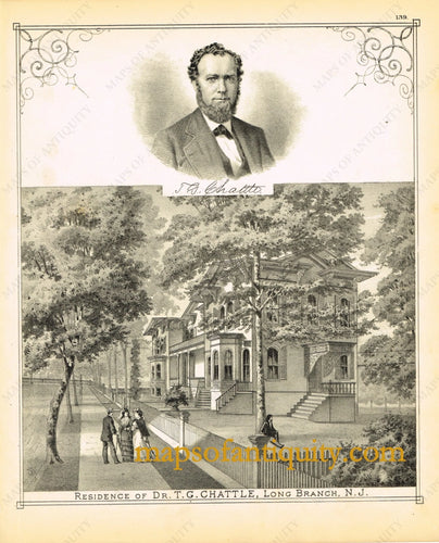 1878 - Residence of Dr. T.G. Chattle, Long Branch, N.J. - Antique Engraved Print