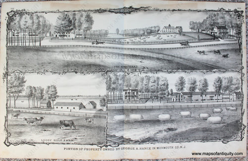 1878 - Portion of Property Owned by George A. Hance in Monmouth County, N.J. - Antique Engraved Print
