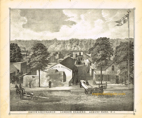 1878 - Smock and Buchanon Lumbar Dealers, Asbury Park N.J. Engraving - Antique Engraved Print