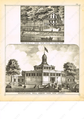 1878 - River View House Ocean Beach and Educational Hall, Asbury Park, N.J. Engraving - Antique Engraved Print