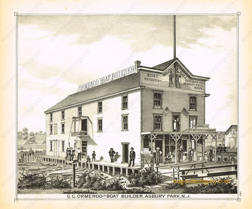1878 - Ormerod the Boat Builder, Asbury Park, N.J. - Antique Engraved Print