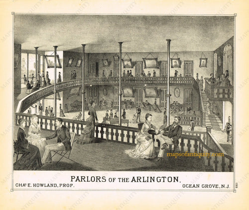 1878 - Parlors of the Arlington, Ocean Grove, N.J. engraving - Antique Engraved Print