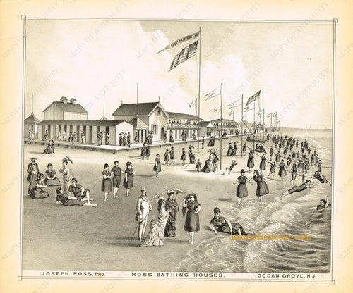 1878 - Ross Bathing Houses, Ocean Grove, N.J. engraving - Antique Engraved Print