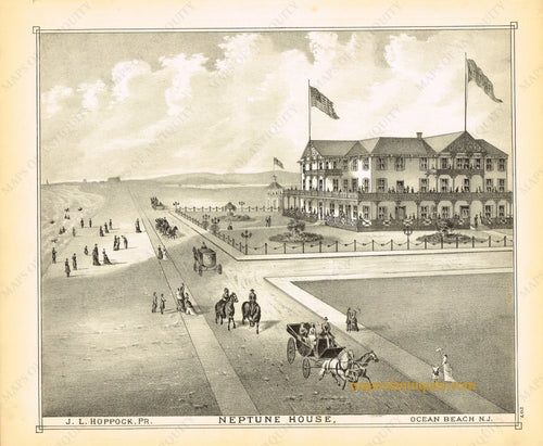 1878 - Neptune House, Ocean Beach, N.J. - Antique Engraved Print