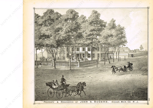 1878 - Squan, Mon. Co., Rodgers residence (NJ) - Antique Engraved Print