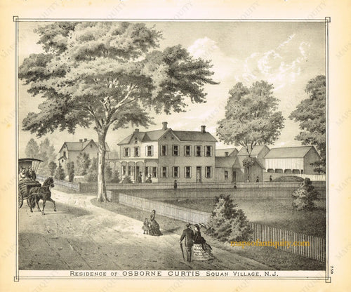 1878 - Residence Osborne Curtis, Squan, N.J. - Antique Engraved Print