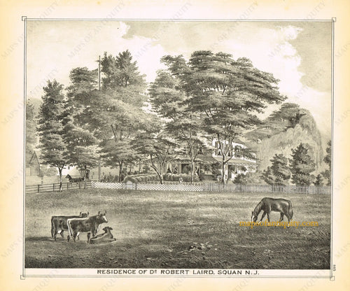 1878 - Residence Of Robert Laird, Squan, N.J. - Antique Engraved Print