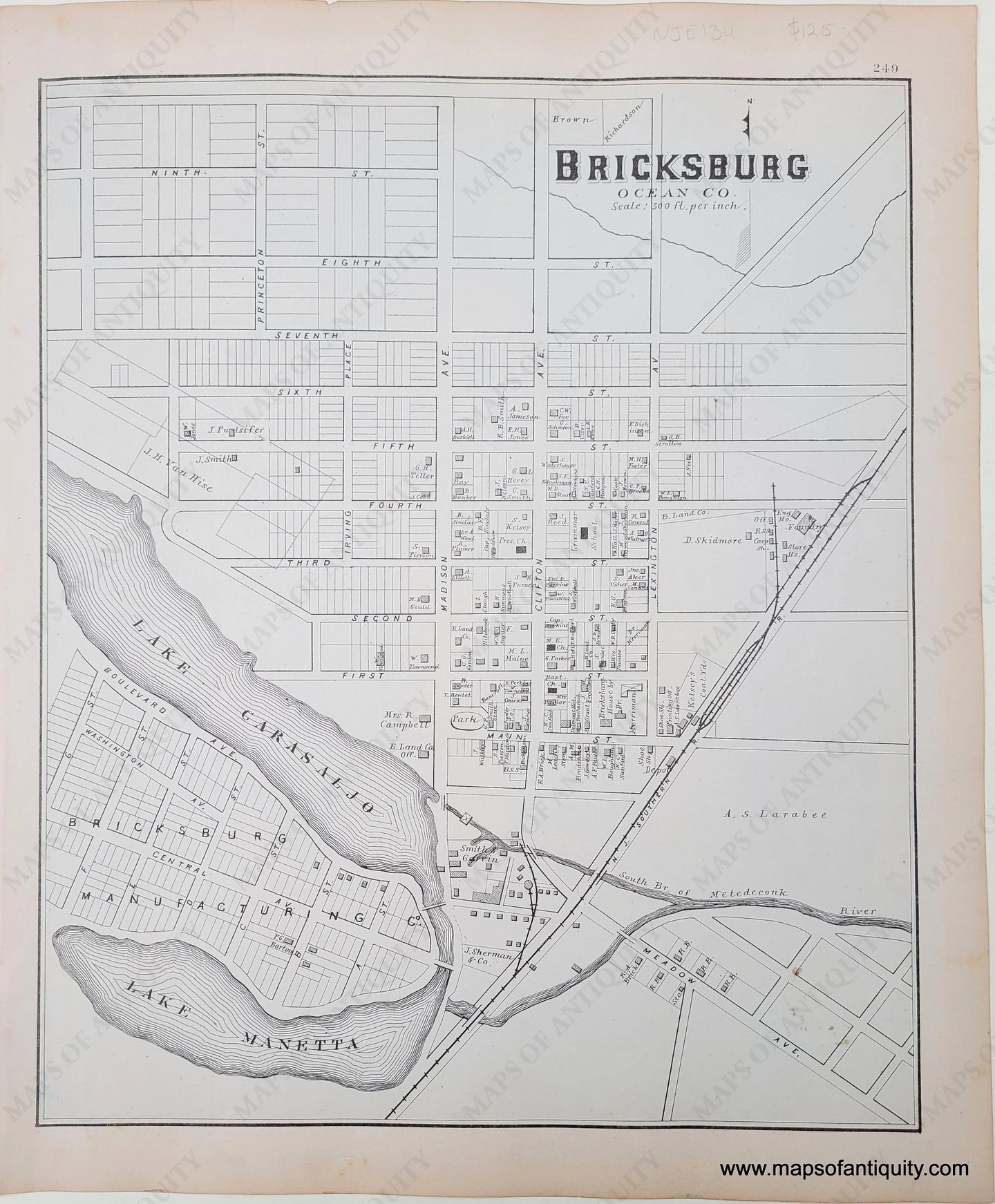 Antique map from the New Jersey Coast Atlas, 1878. Hand-colored map showing property owners, approximately 10 x 12", Very good overall antique condition with some tiny stains.