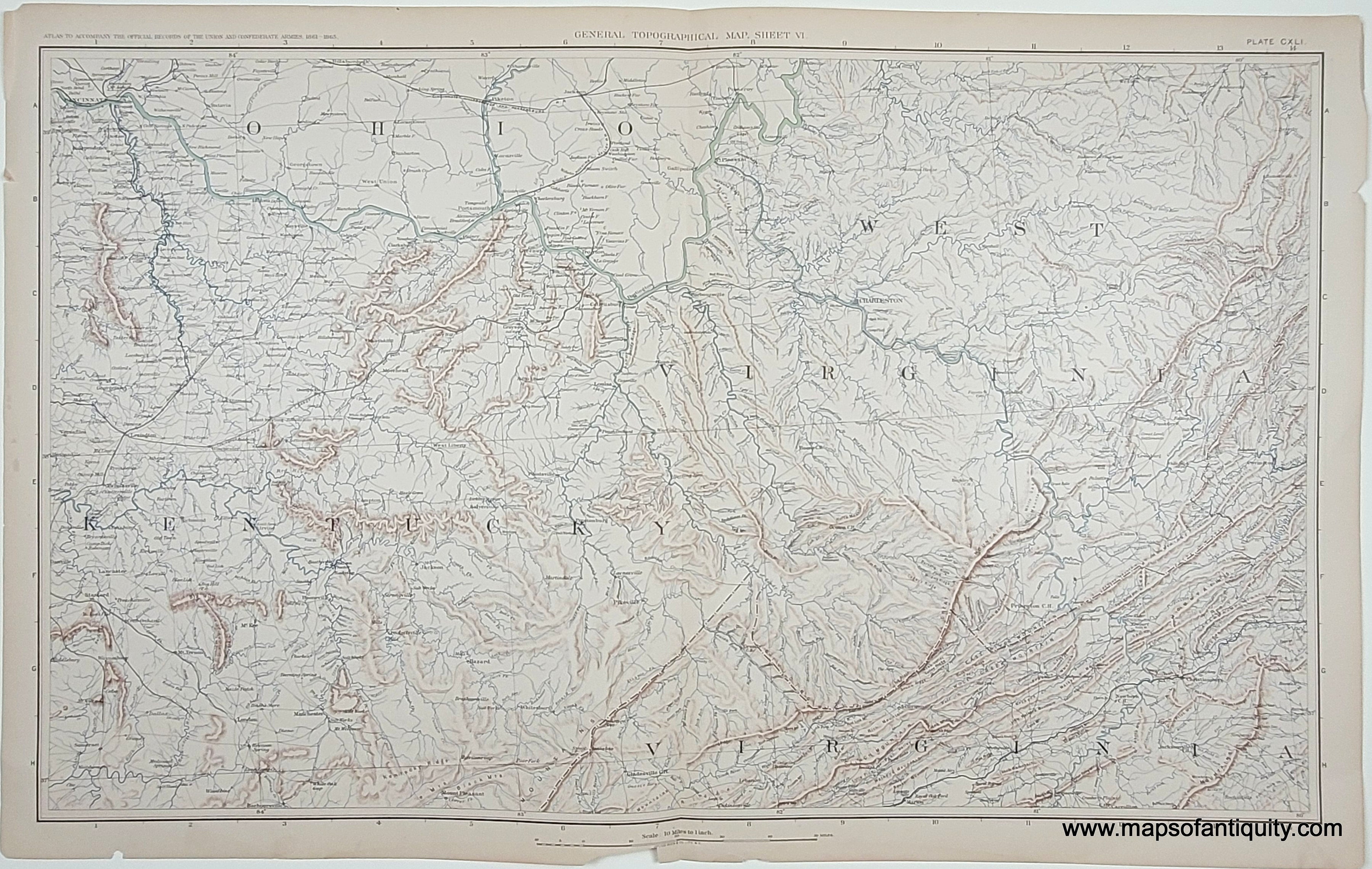 Full title: Plate 141. General Topographical Map. Sheet VI. Sections of Ohio, West Virginia, Kentucky and Virginia.