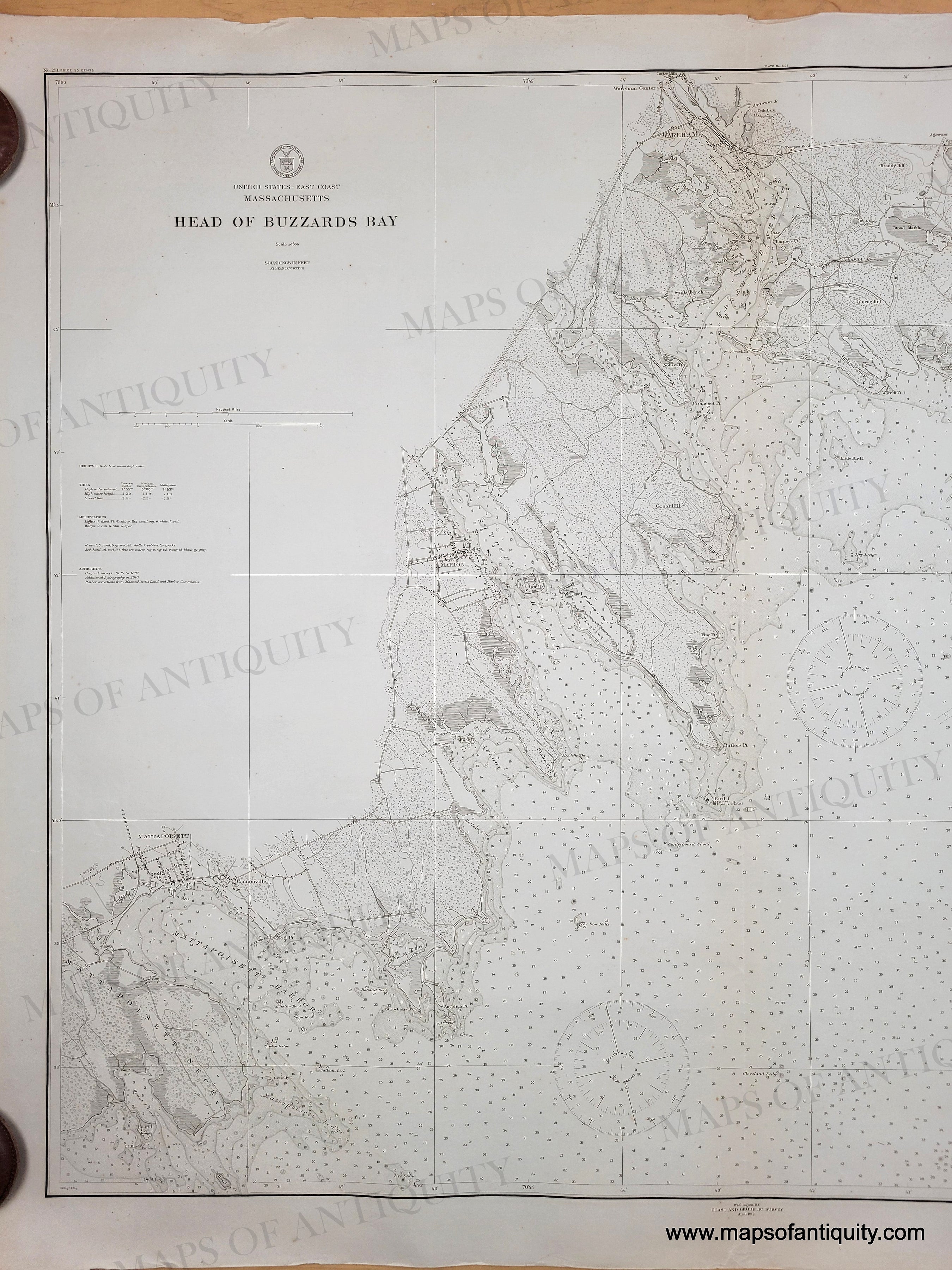 1912 - Head of Buzzards Bay, Massachusetts - Antique Chart