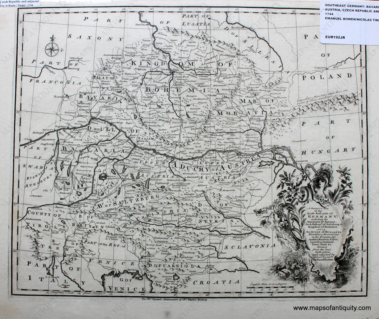 Black-and-white-13-3/4-X-161/2-A-Correct-Map-of-the-South-East-part-of-Germany-including-the-Electorate-of-Bavaria-Arch-Bishop-of-Saltzburg-&-Kingdom-of-Bohemia.**********-Europe-Germany-1744-Bowen-Maps-Of-Antiquity