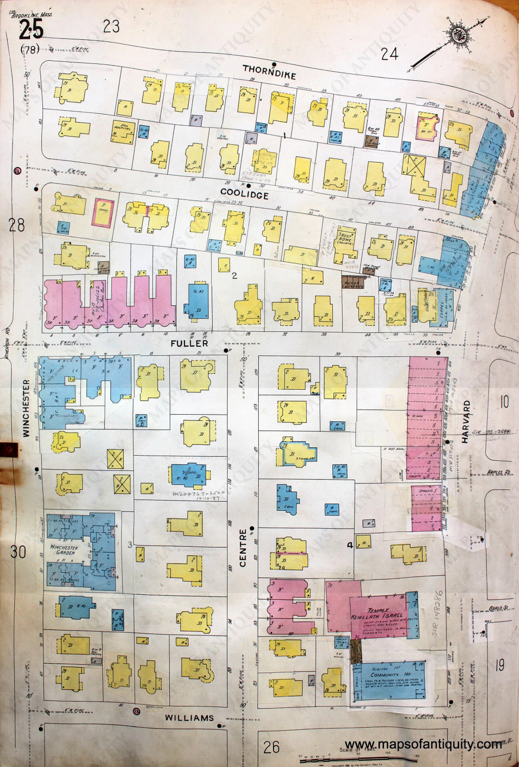 Antique-Hand-Colored-Map-Brookline-Mass.-Wards-24-and-25-United-States-Massachusetts-1925-Sanborn-Map-Co.-Maps-Of-Antiquity