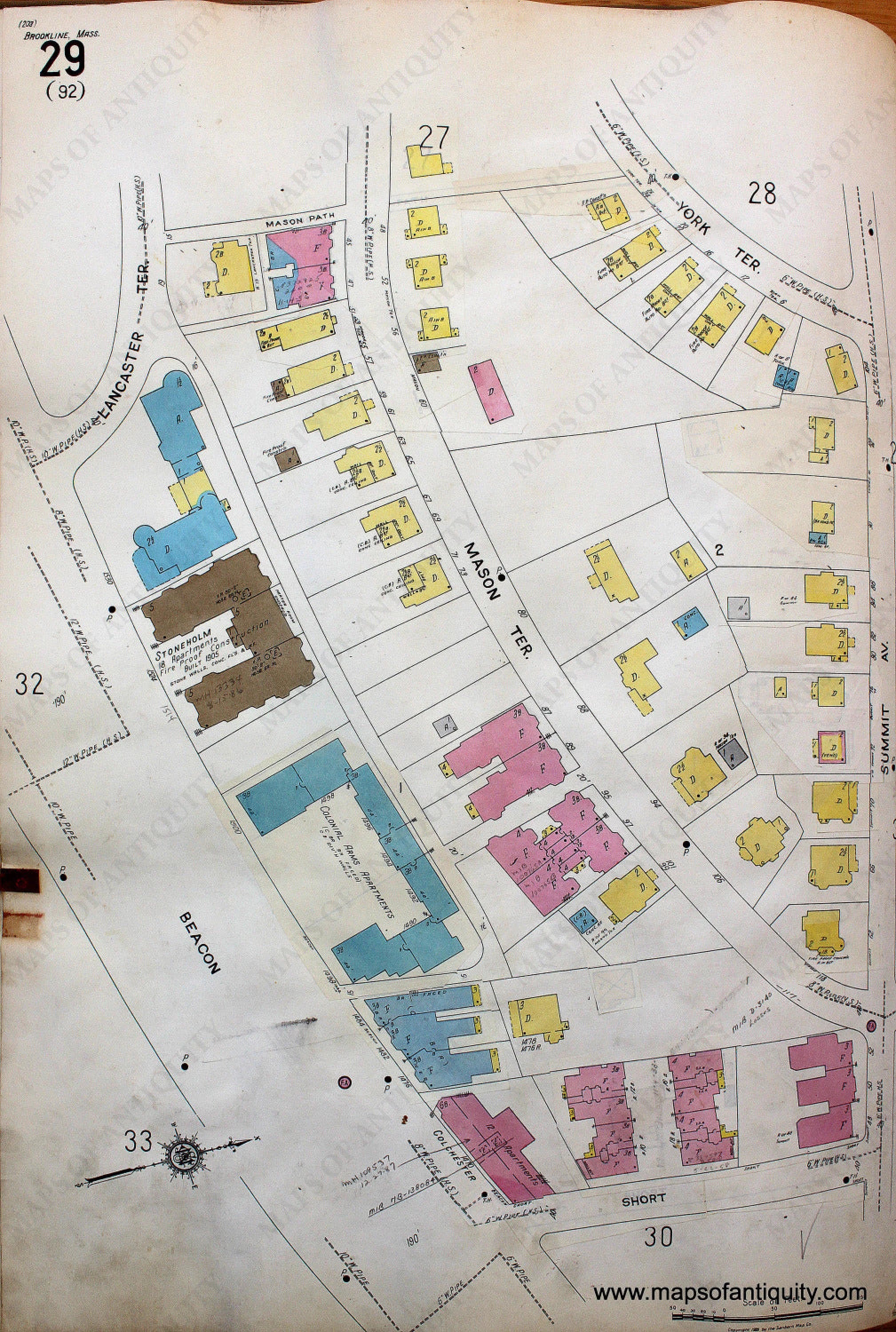 Antique-Hand-Colored-Map-Brookline-Mass.-Wards-28-and-29-United-States-Massachusetts-1925-Sanborn-Map-Co.-Maps-Of-Antiquity