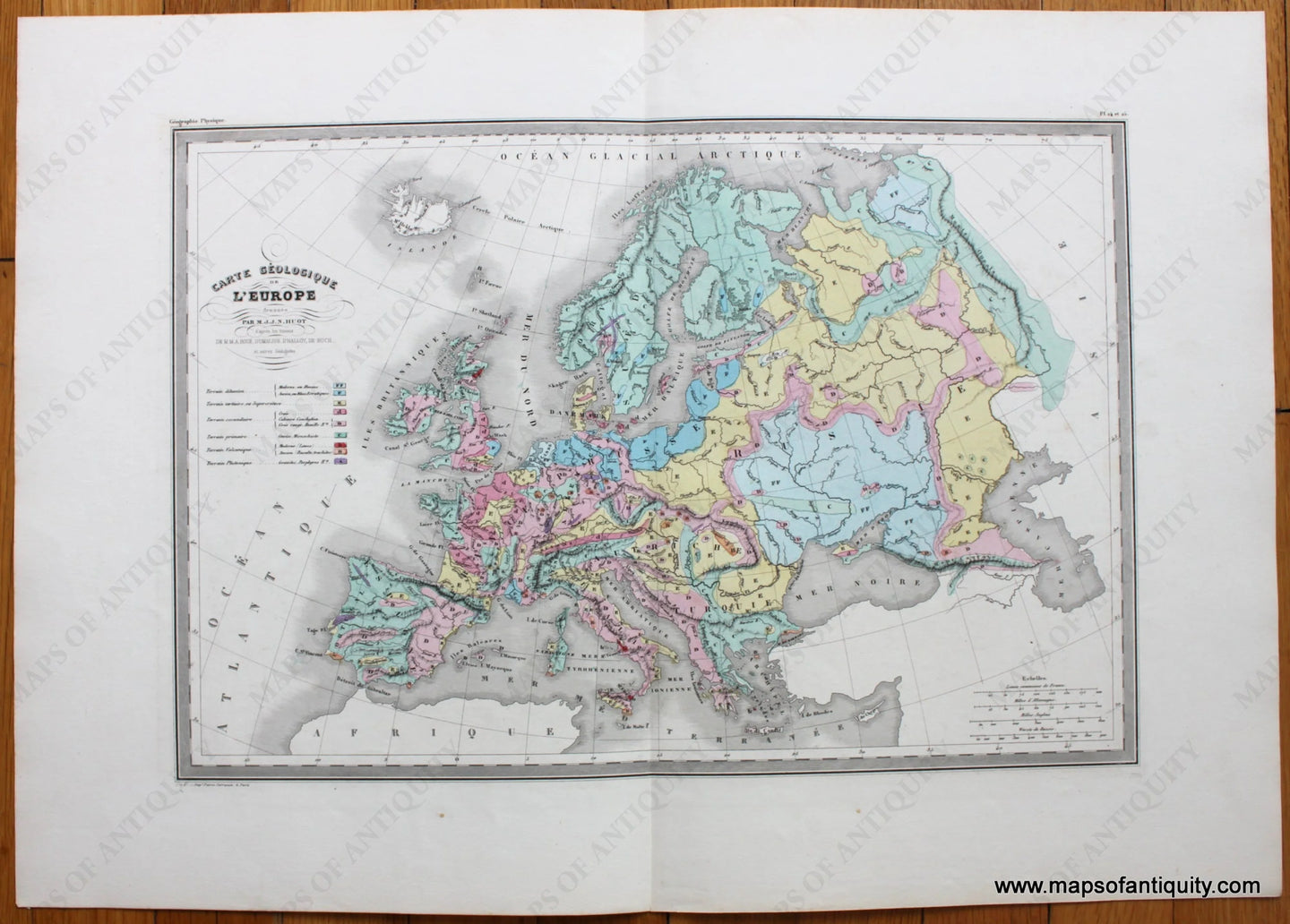 Antique-Hand-Colored-Map-Carte-Geologique-de-l'Europe-Europe-Europe-General-1860-M.-Malte-Brun-Maps-Of-Antiquity