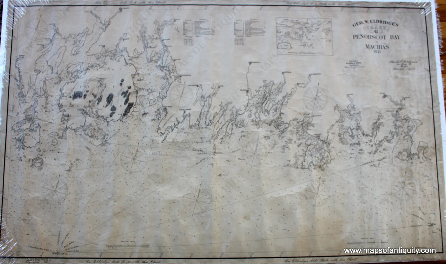 Eldridge Chart G, with inset of Moose A Bec Bar, includes Bar Harbor, Mount Desert Island, good to very good condition, aged and used but evenly, with good sharp ink images, photo taken through plastic wrapper, 30" x 50â ‚¬ **NOTE- because this map requires extra insurance for shipping, an additional charge will appear on your card after your original purchase. If you would like to know what that charge will be, please contact us.**