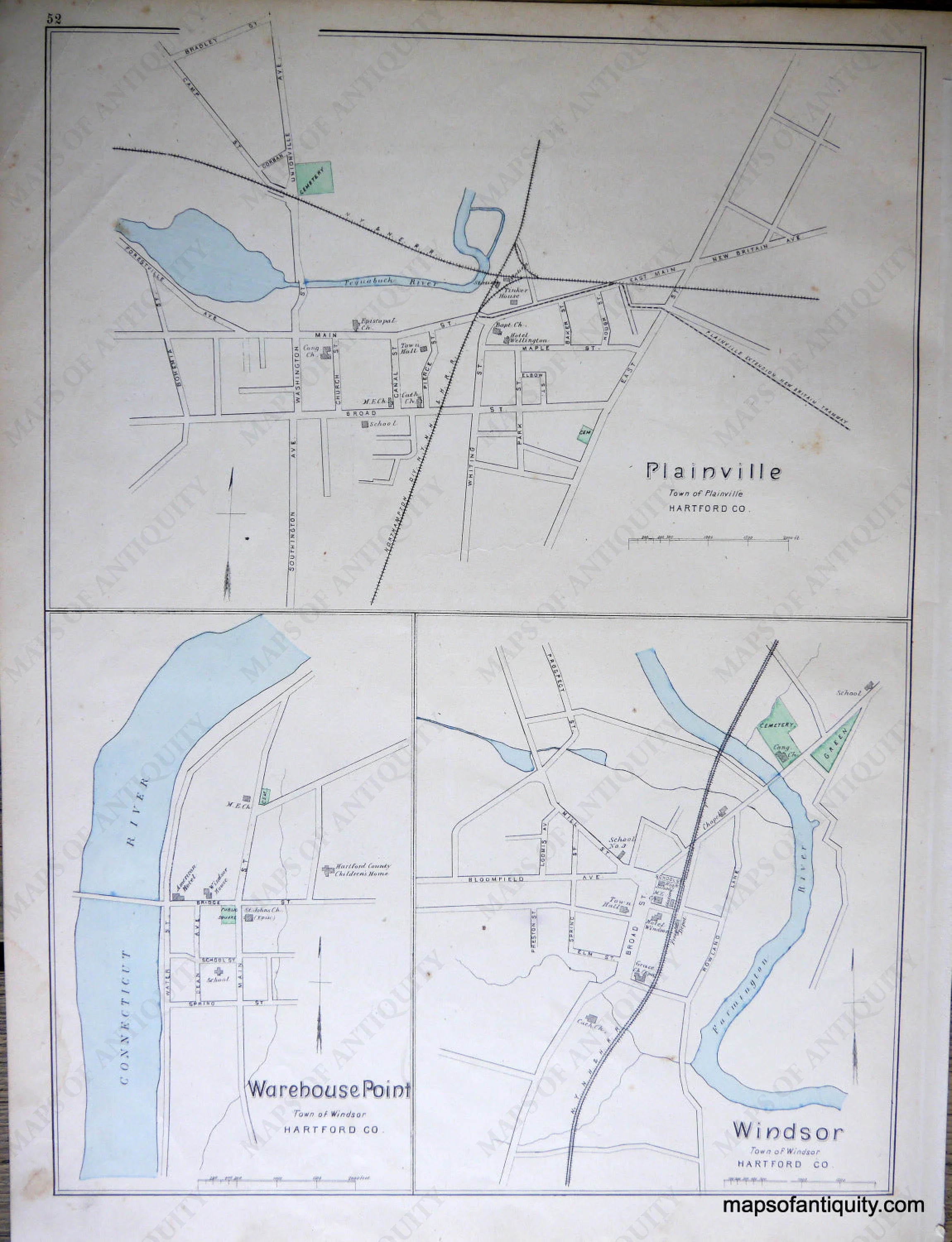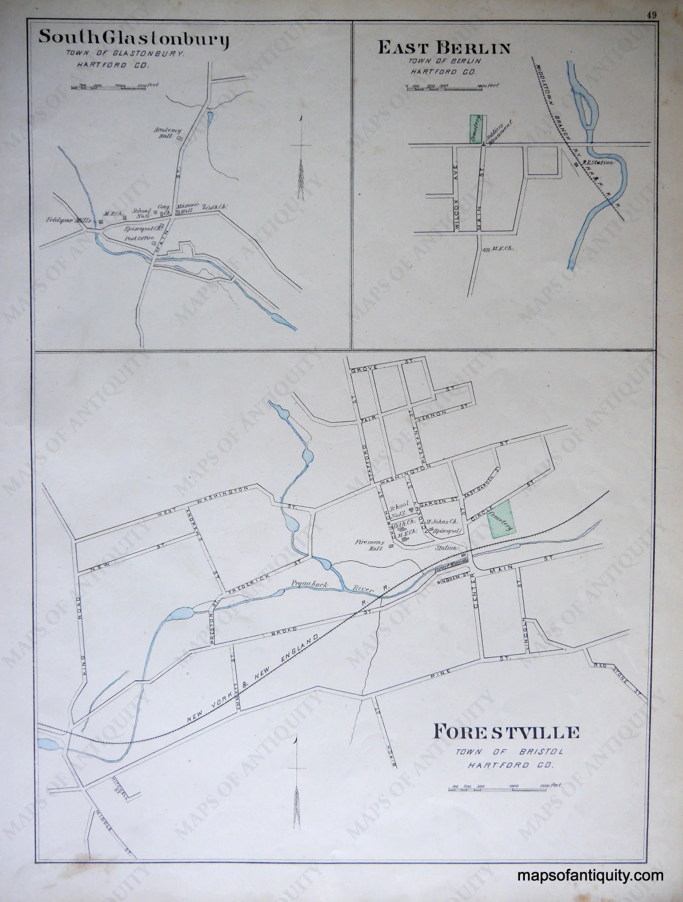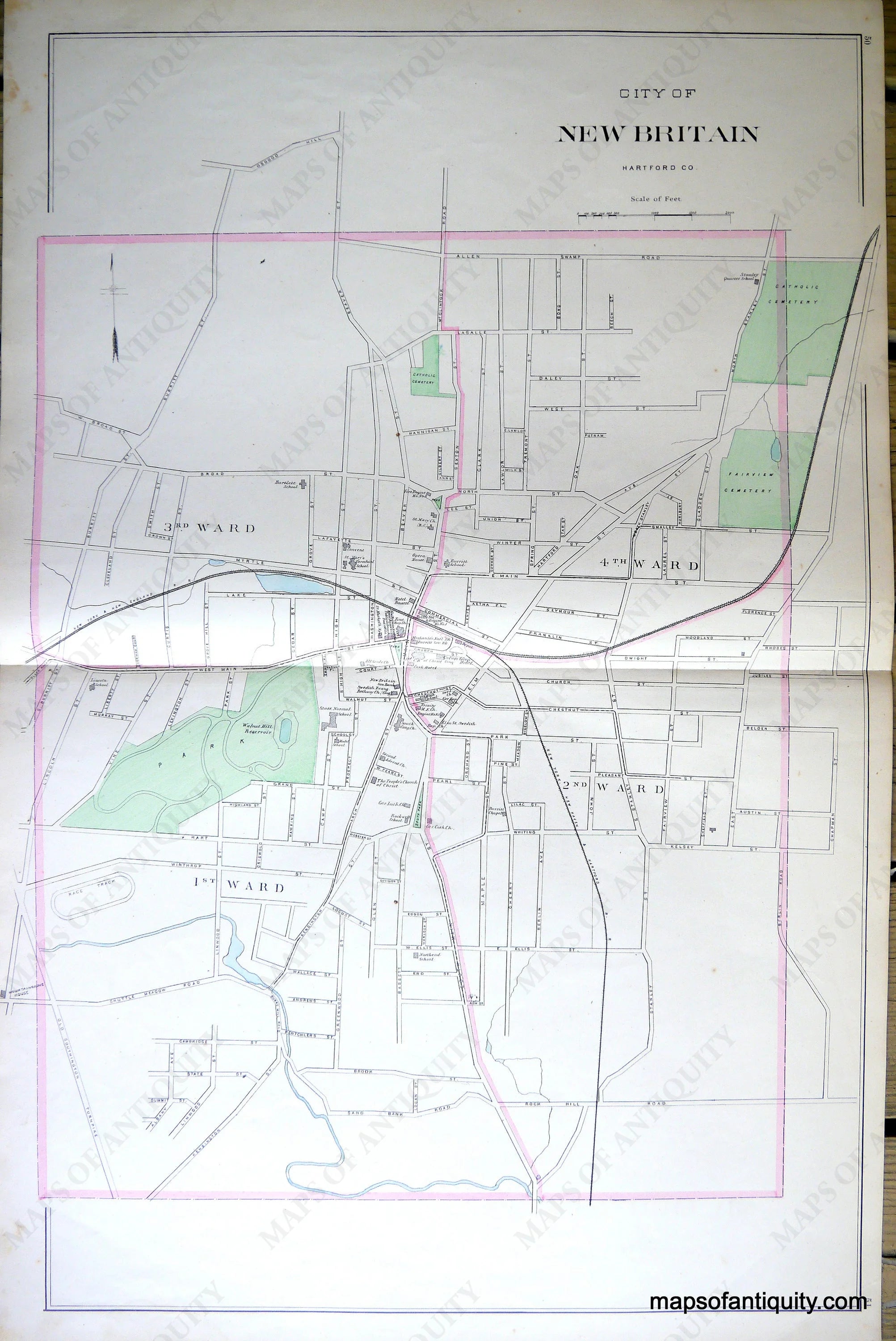 Antique-Hand-Colored-Map-City-of-New-Britain-(CT)-Connecticut--1893-D.H.-Hurd-Maps-Of-Antiquity