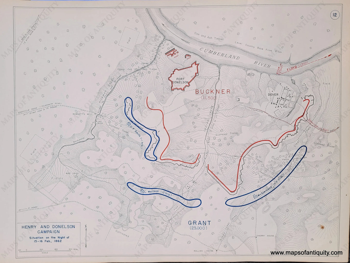 Antique map of Civil War battles, published in the Civil War Atlas to Accompany Steele's American Campaigns, prepared by the Department of Military Art and Engineering, United States Military Academy, published in 1948. Good to very good condition with some minor spots and mild wear at the paper edge. Measures approx. 12.75 x 18 inches to the paper edges.
