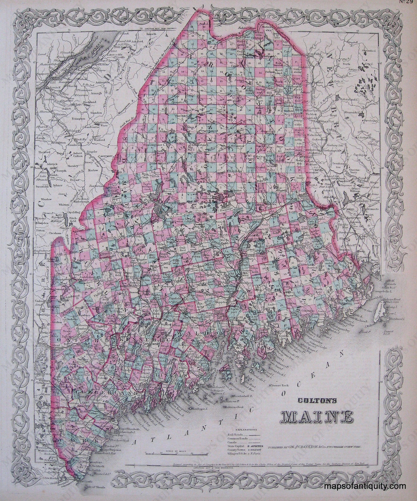Antique-Hand-Colored-Map-Colton's-Maine-**********-United-States-Northeast-1871-Colton-Maps-Of-Antiquity
