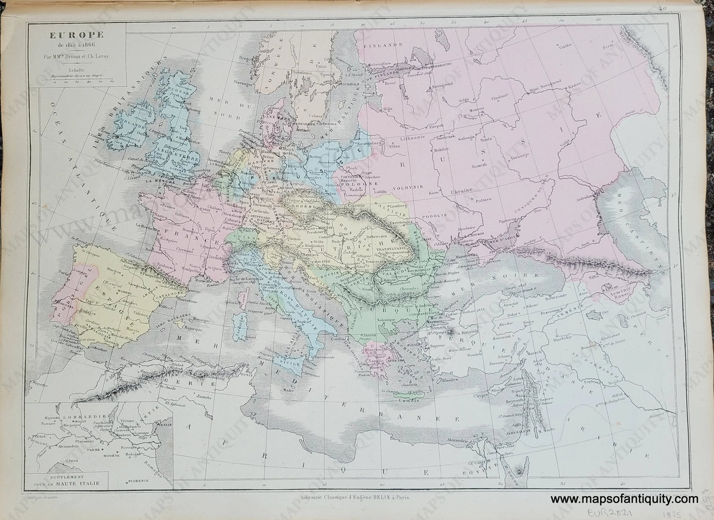 Antique map from the Atlas Universel et Classique de Geographie €¦ by MM. Drioux and CH. Leroy, 1875. In French. Good to very good antique condition with minor signs of age some minor stains. Page measures approx. 13.25 x 9.5 inches.