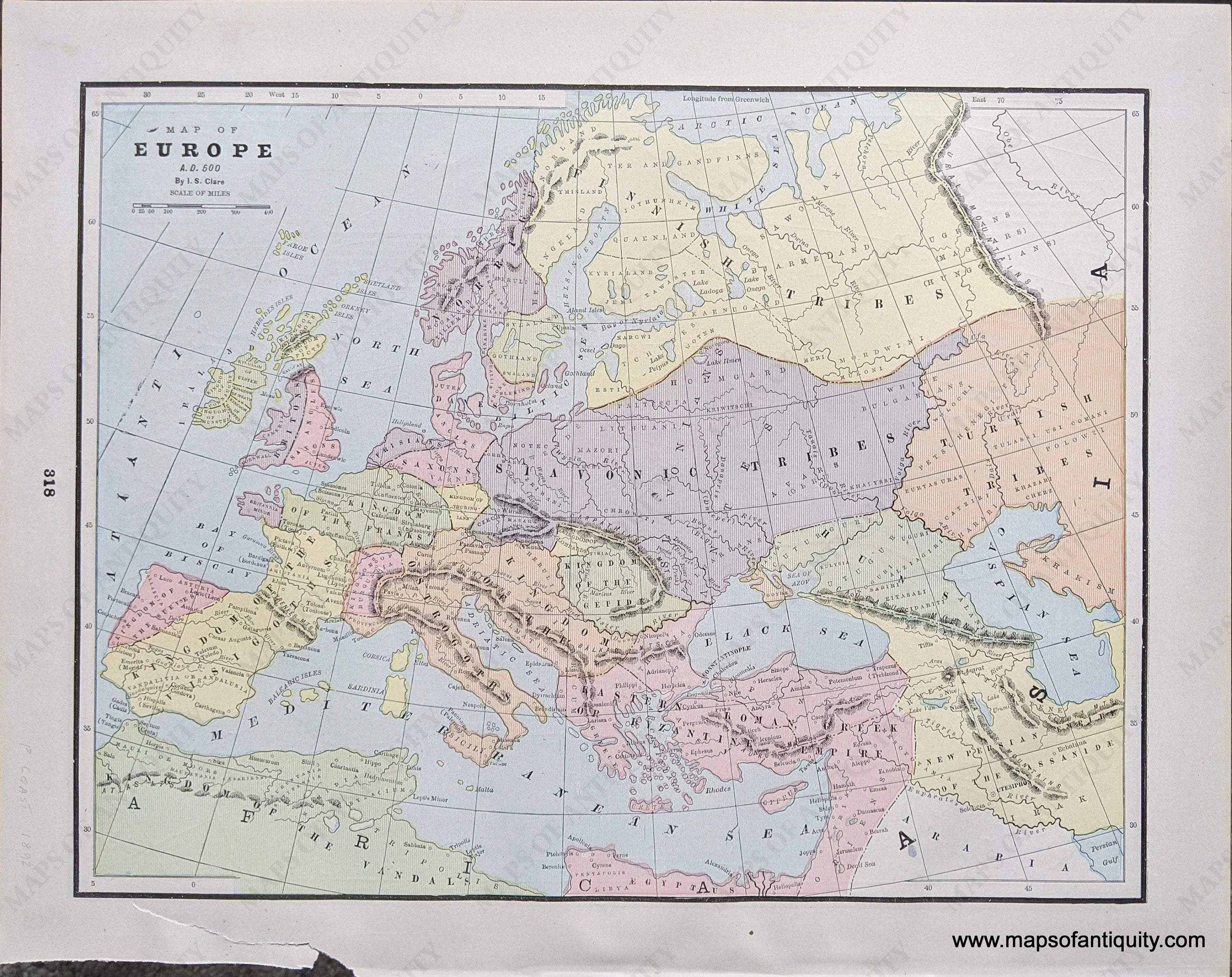 Antique printed color maps published in "The Pacific Coast and the World" by the Home Library and Supply Association, 1892. Very good overall antique condition with some very mild toning/foxing (mainly at the outer edges.) Measure approx. 12 x 9.25" to the neatline.