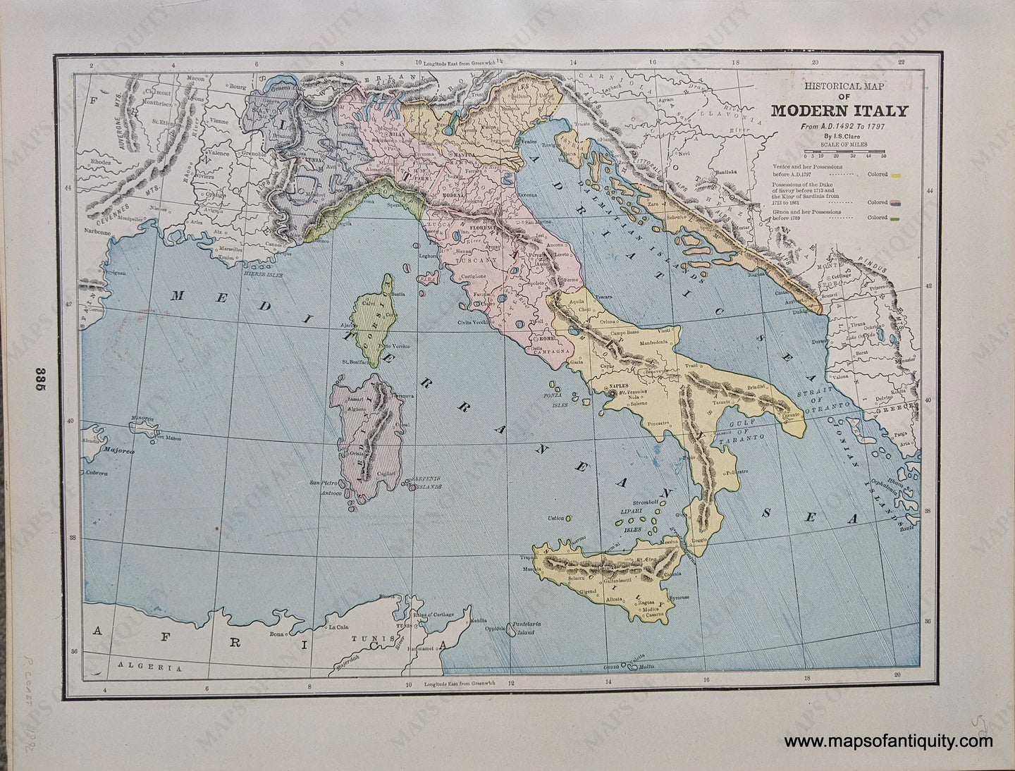 Antique printed color maps published in "The Pacific Coast and the World" by the Home Library and Supply Association, 1892. Very good overall antique condition with some very mild toning/foxing (mainly at the outer edges.) Measure approx. 12 x 9.25" to the neatline.