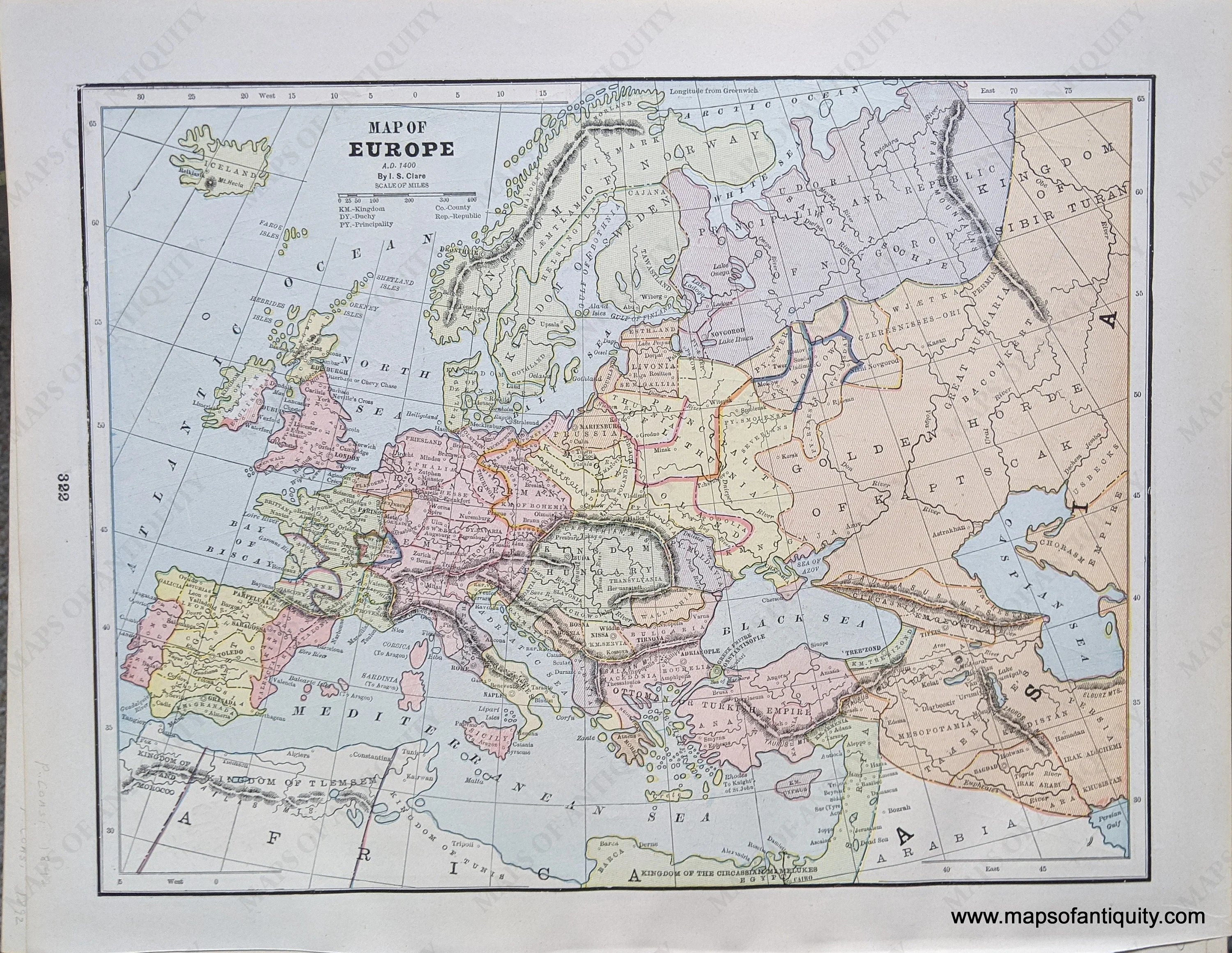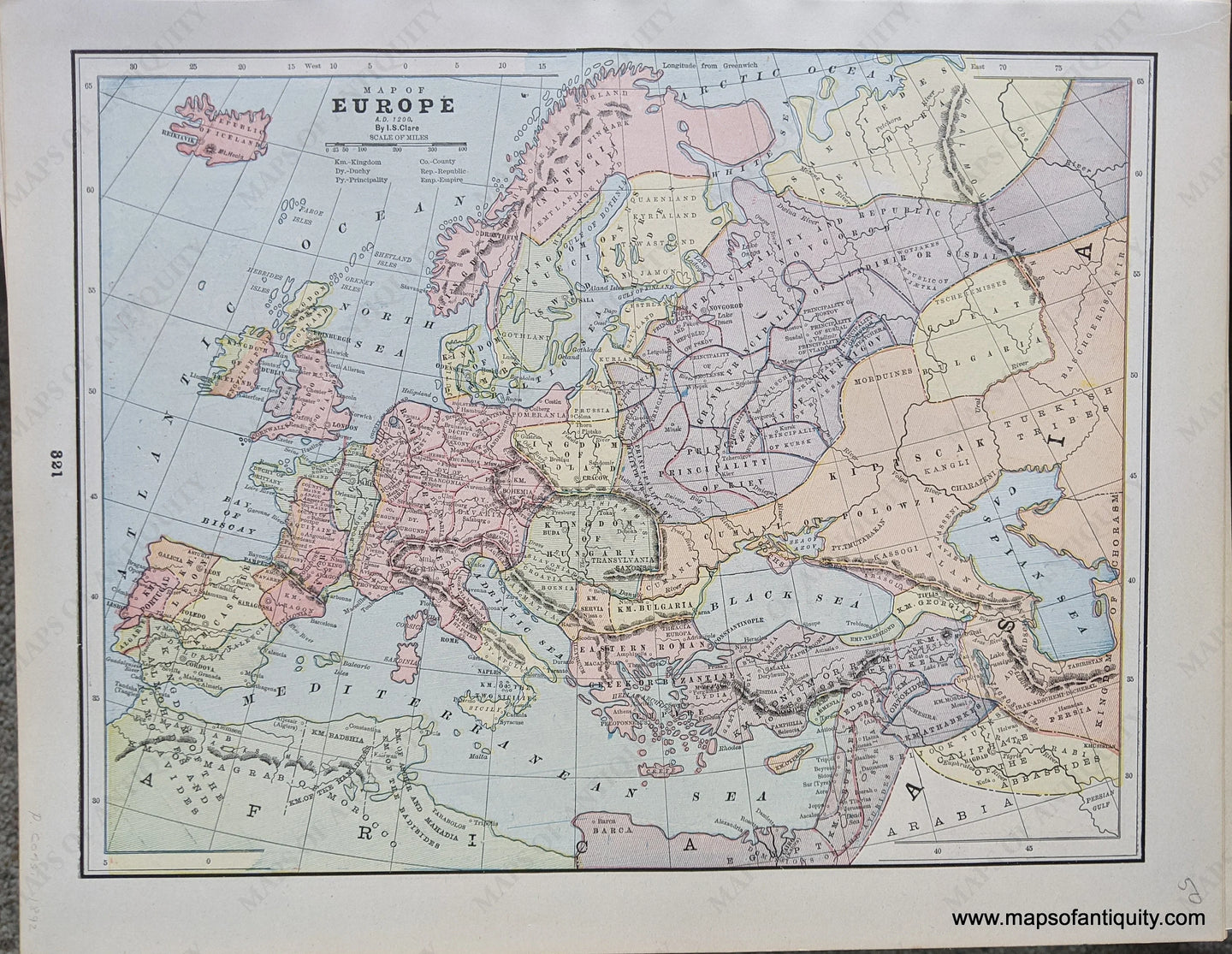 Antique printed color maps published in "The Pacific Coast and the World" by the Home Library and Supply Association, 1892. Very good overall antique condition with some very mild toning/foxing (mainly at the outer edges.) Measure approx. 12 x 9.25" to the neatline.