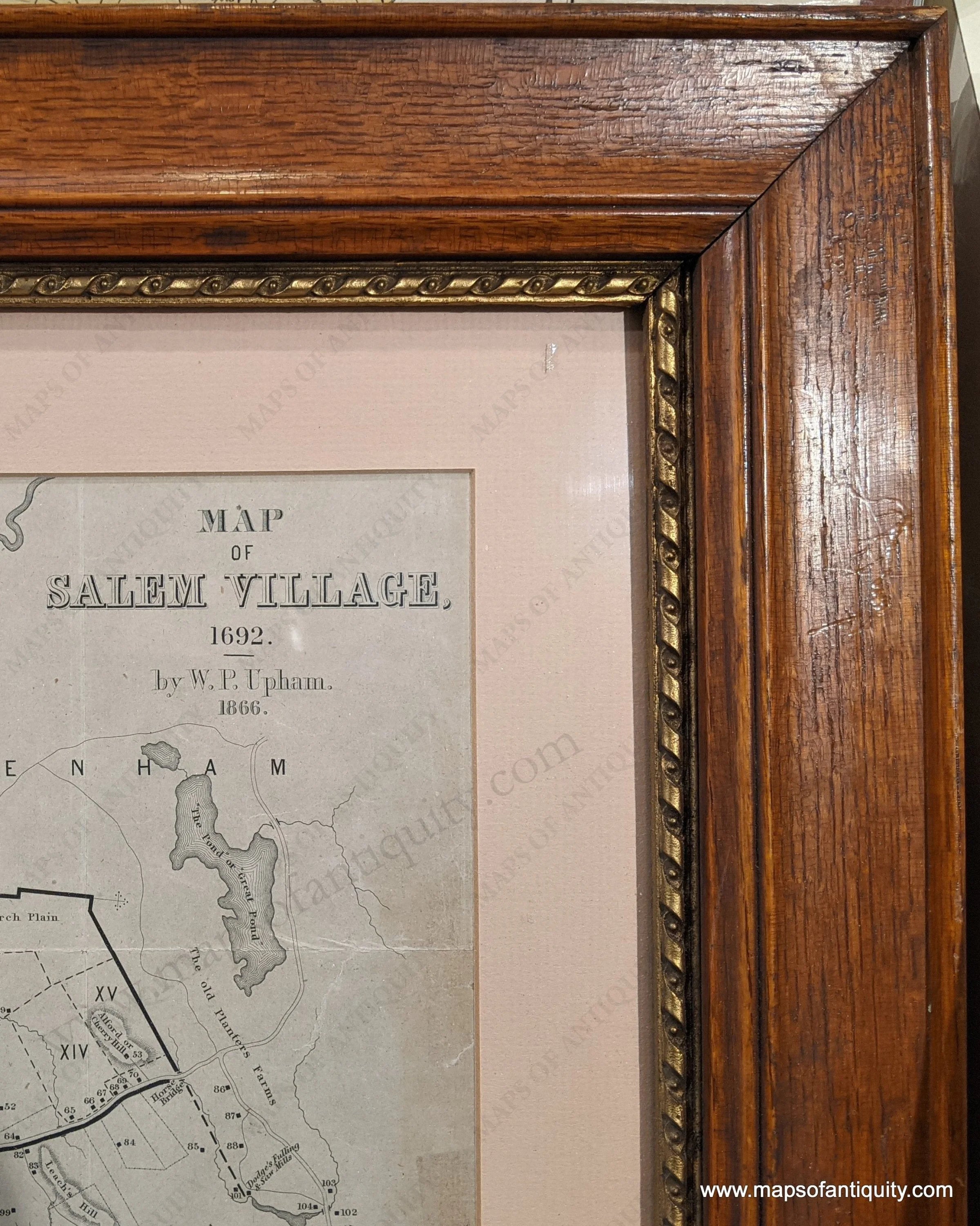 Genuine-Antique-Map-Framed-Map-of-Salem-Village-1692.-by-W.-P.-Upham-1866.-1866-Upham-Maps-Of-Antiquity-1800s-19th-century