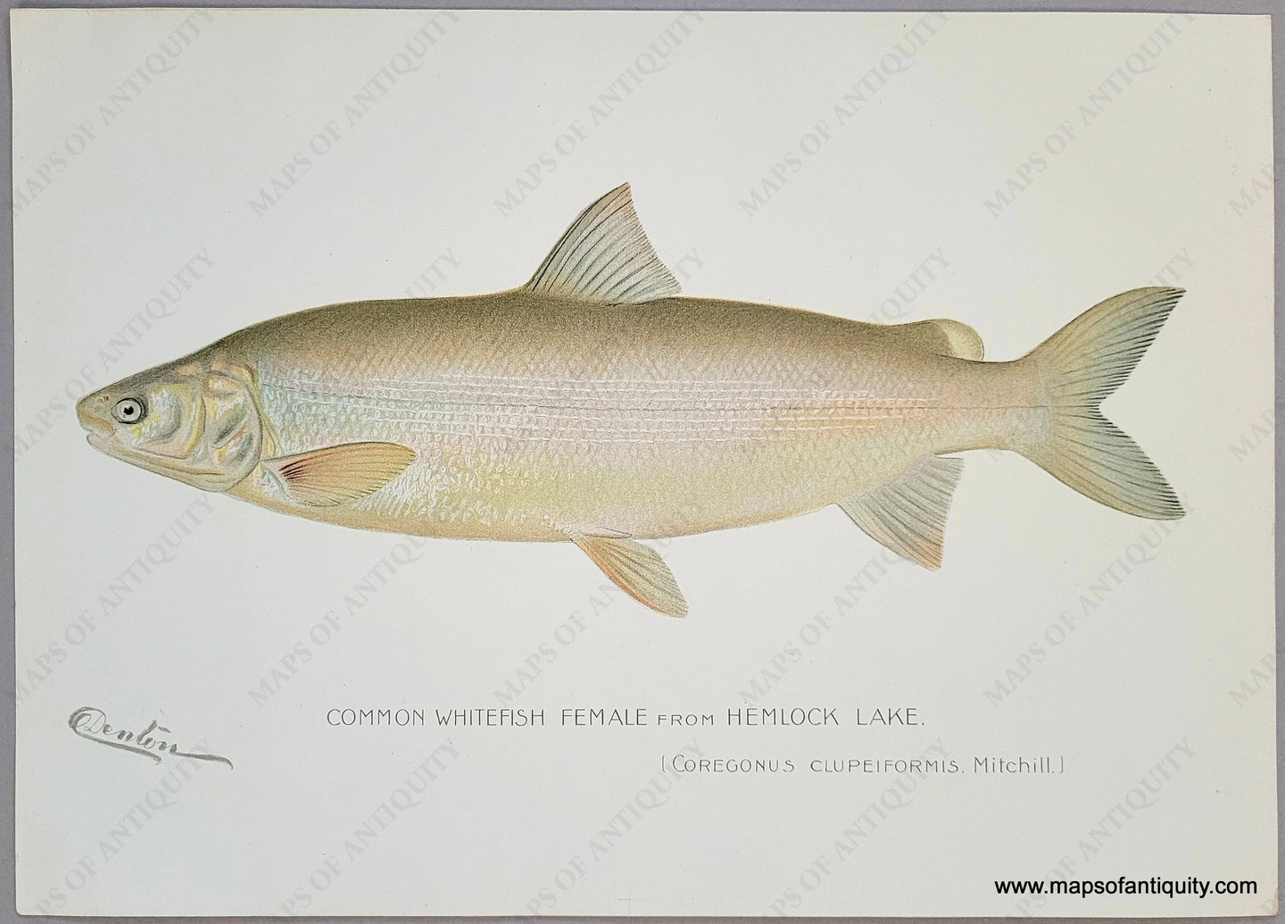 Original antique chromolithograph by Denton, part of a series documenting various species of fish for the State of New York Fisheries, Game, and Forest Commission's Annual Reports, late 1890's to early 1900's, in very good condition, approx. 9.25 x12 inches. (Please note date of piece is circa 1900 to 1906).