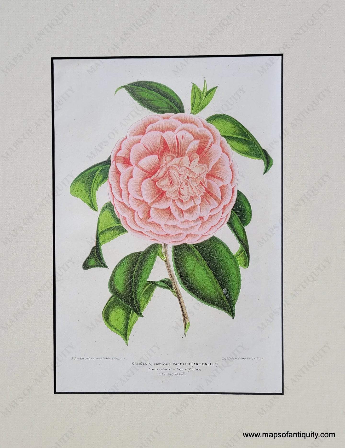Genuine-Antique-Print-Camellia-Comtesse-Pasolini-1870-Ambroise-Verschaffelt-lIllustration-Horticole-Maps-Of-Antiquity