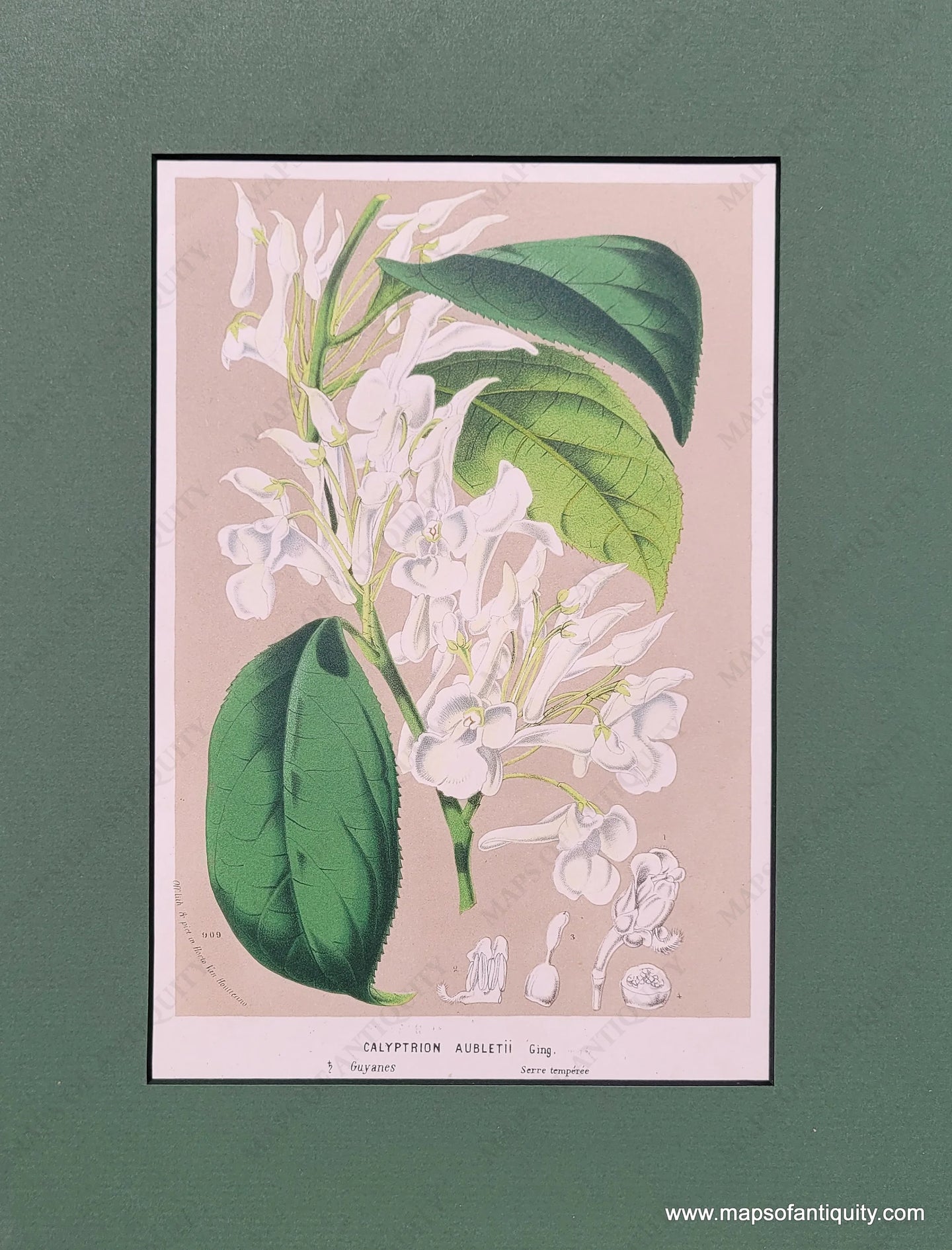 Antique print of Calyptrion arboreum, from Flore des serres et des Jardins de l'Europe, c. 1850. Vivid original coloring. Matted. Very good antique condition. Measures approx. 14 x 11 to the outer edges of the mat.