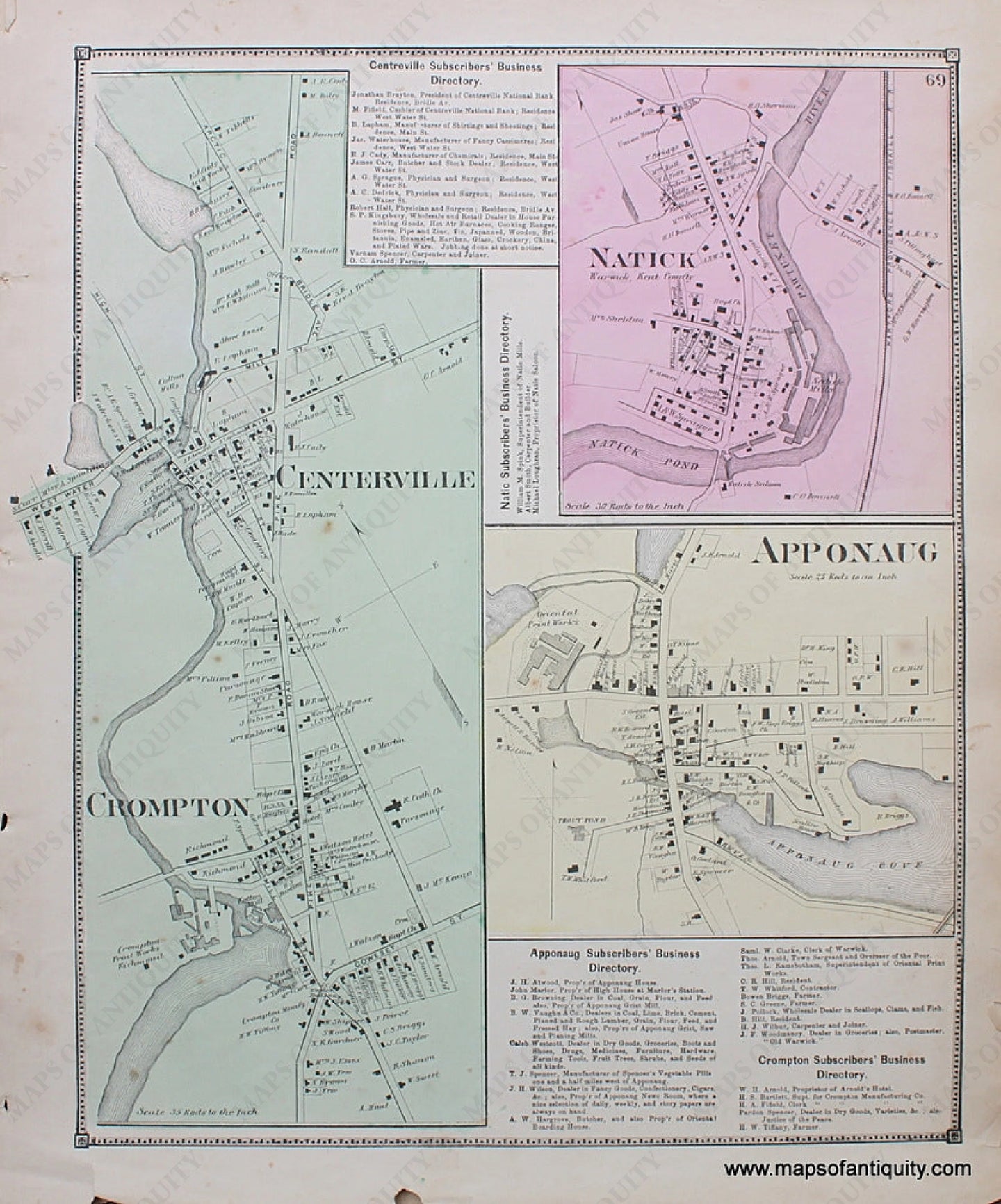 From the Atlas of the State of Rhode Island and Providence Plantations, Beers, 1870. Good condition, approx. 15 x 12.25 inches.