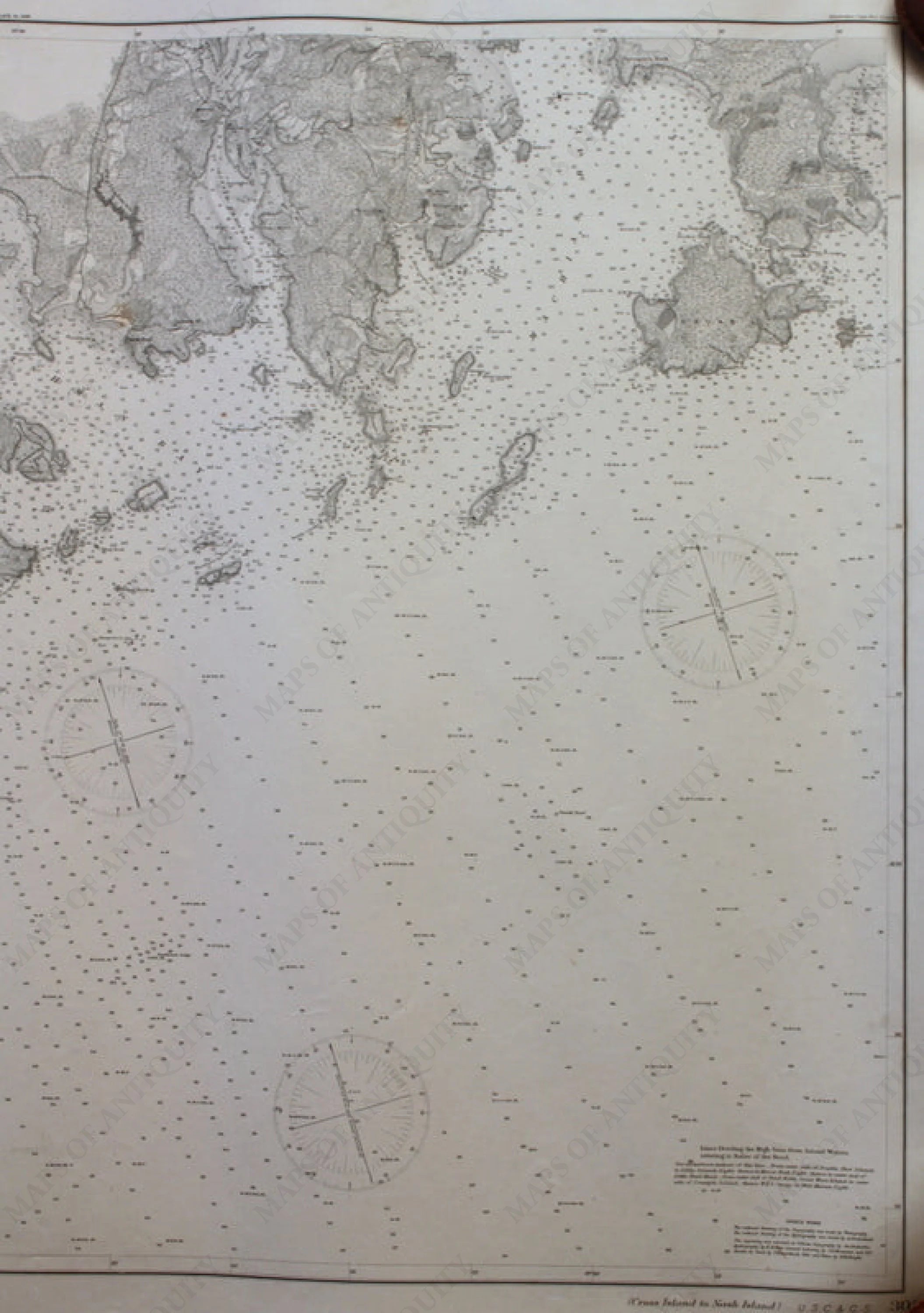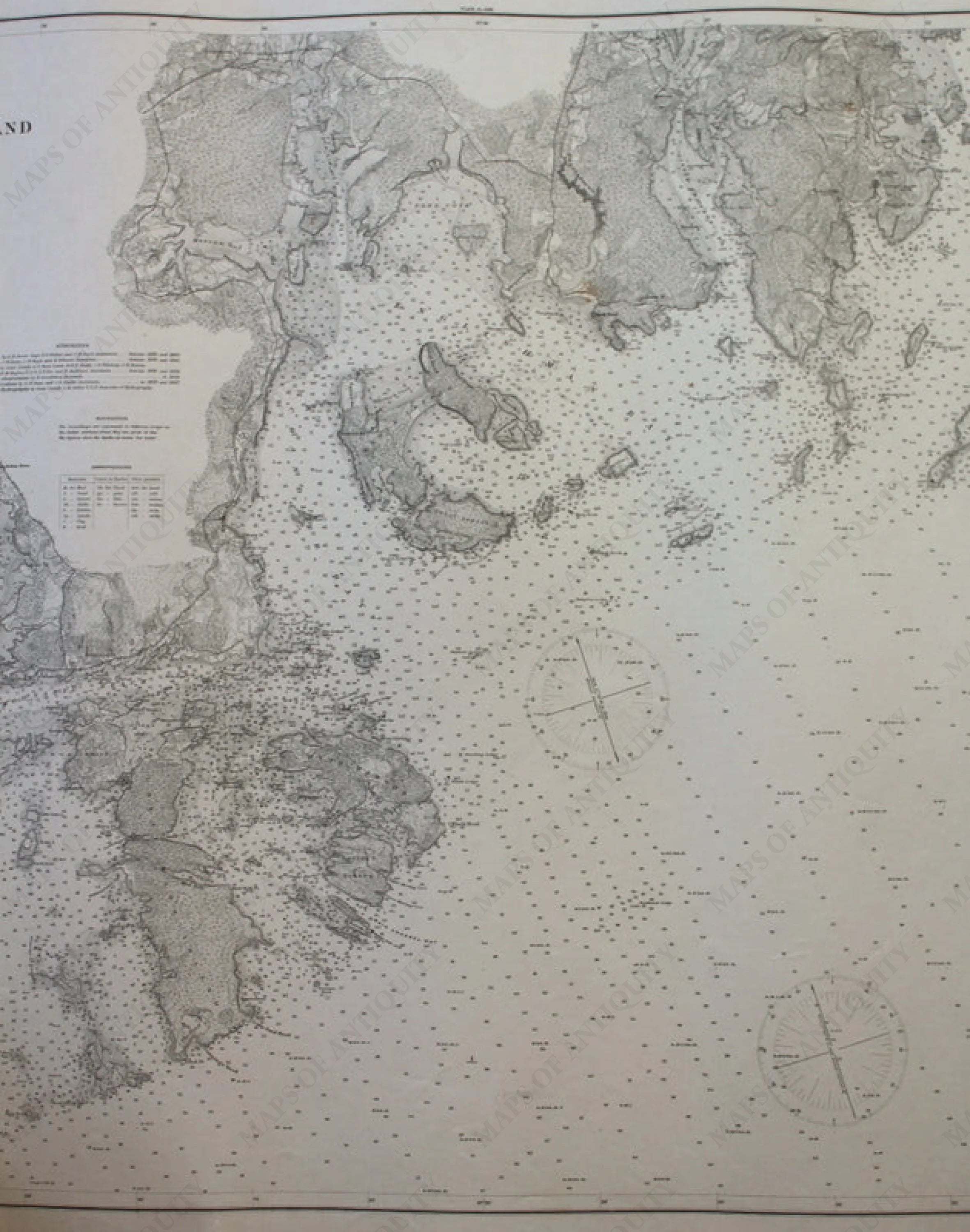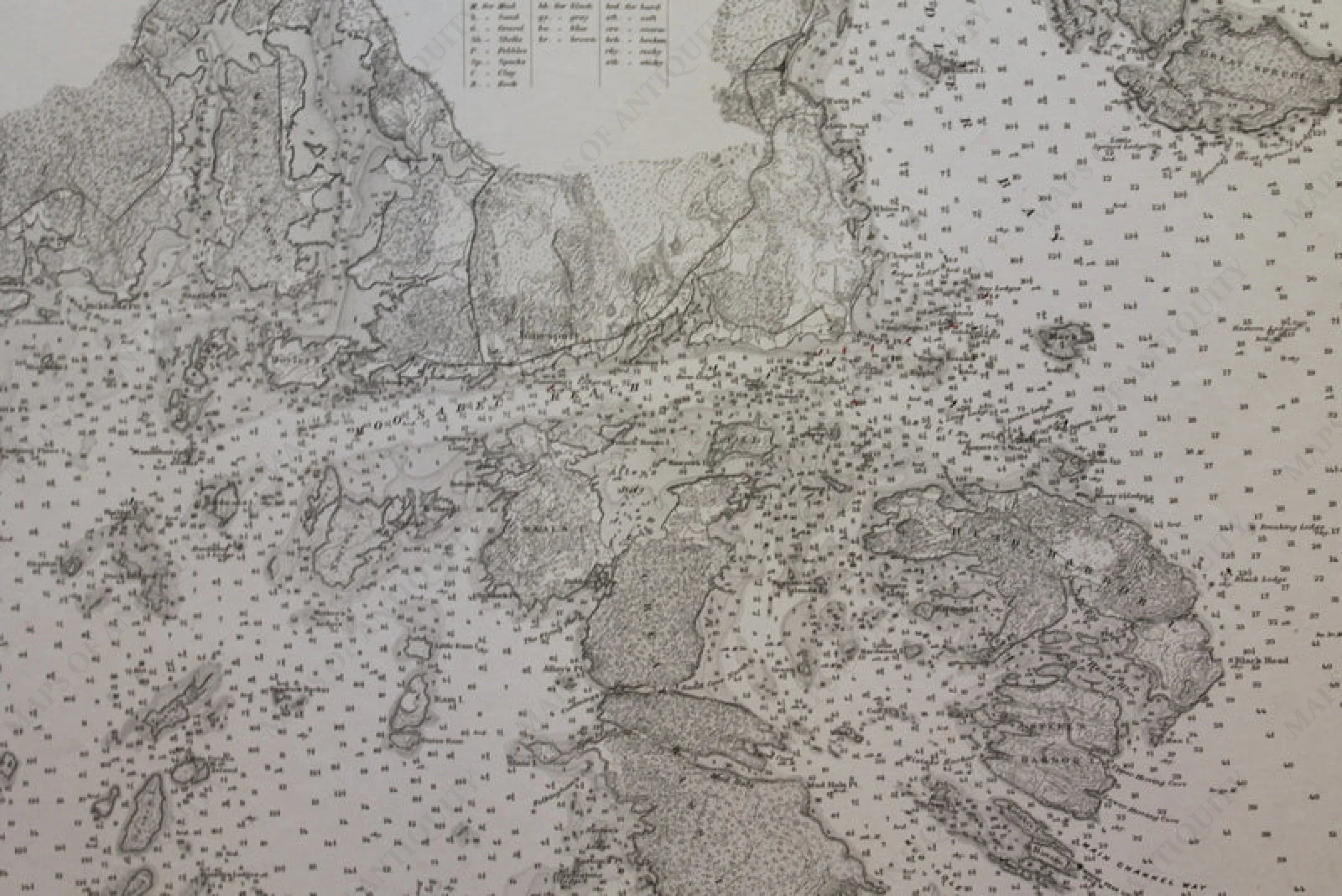 Black and white antique nautical chart, shows the area around Englishman Bay from Cross Island to Nash Island off the coast of Maine with detailed bathymetric data. Very Good antique condition, small tear in bottom edge, approximately 27" x 40" to the neat lines