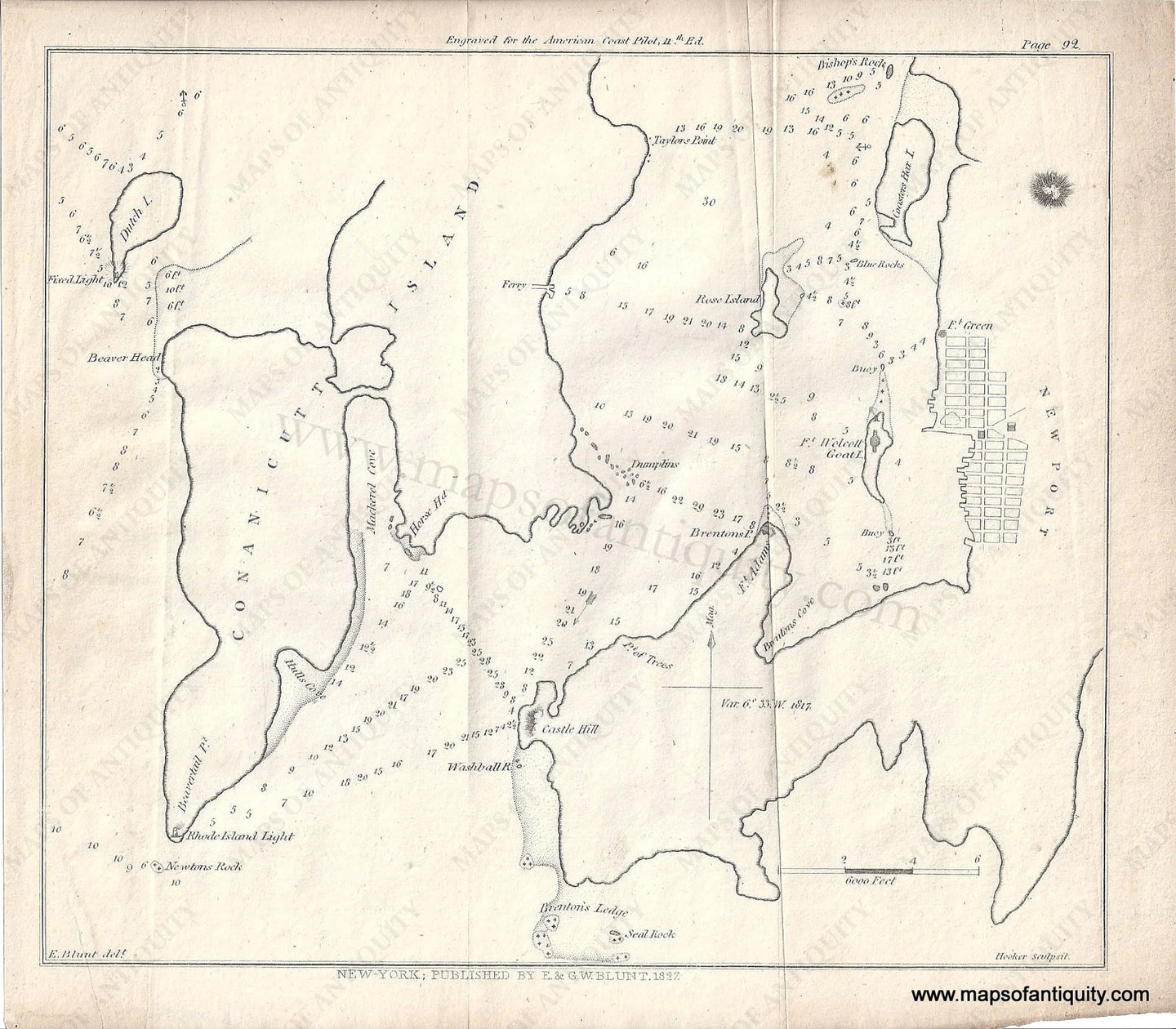 Antique-Nautical-Chart-Newport-Harbor-Rhode-Island-Chart-North-America-Rhode-Island-1827-Blunt-Maps-Of-Antiquity