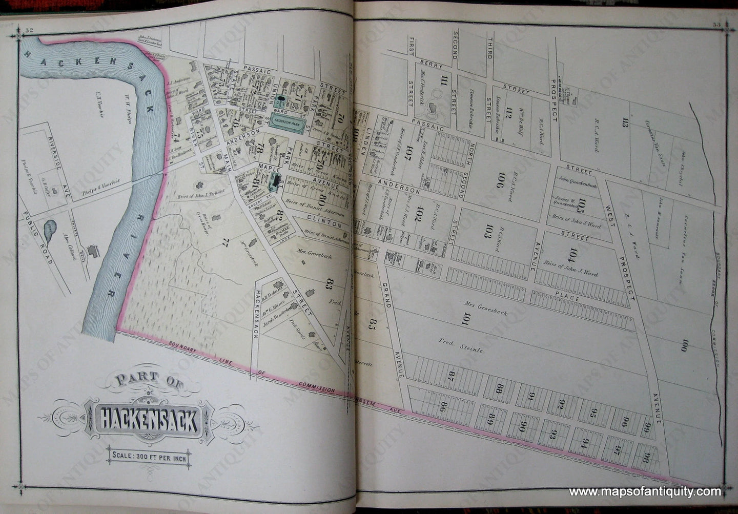 From the Atlas of Bergen Co. New Jersey, 1876, by Walker and Pease. Double page of Part of Hackensack, with maps of Cherry Hill, Arcola and Oradell on reverse side. Very good overall antique condition. Approximately 16 x 26 inches.