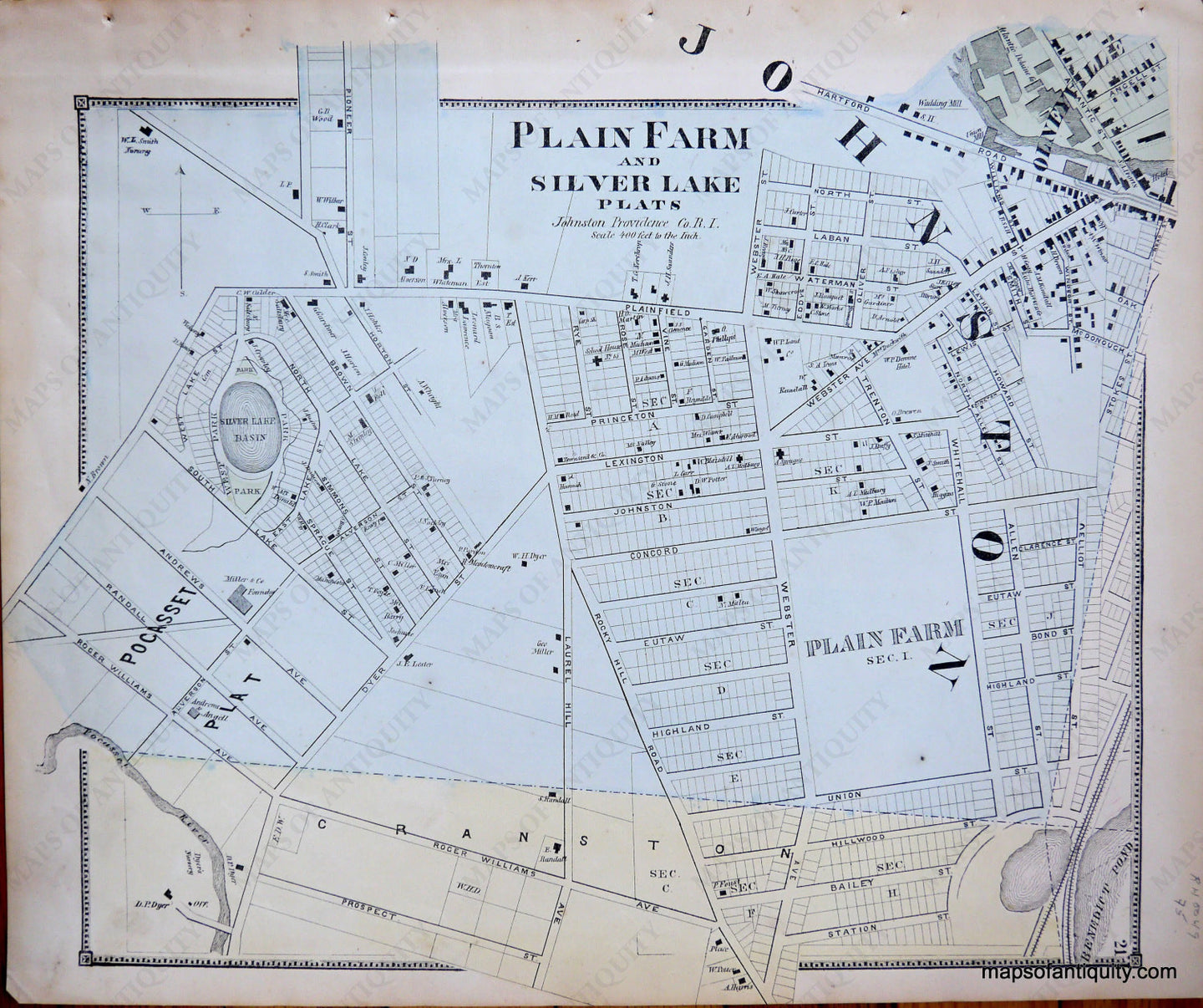 From the Atlas of the State of Rhode Island and Providence Plantations, Beers, 1870. Includes part of Olneyville. Good condition, approx. 15 x 12.25 inches, priced as is, $75.00, if excellent, $95.00.