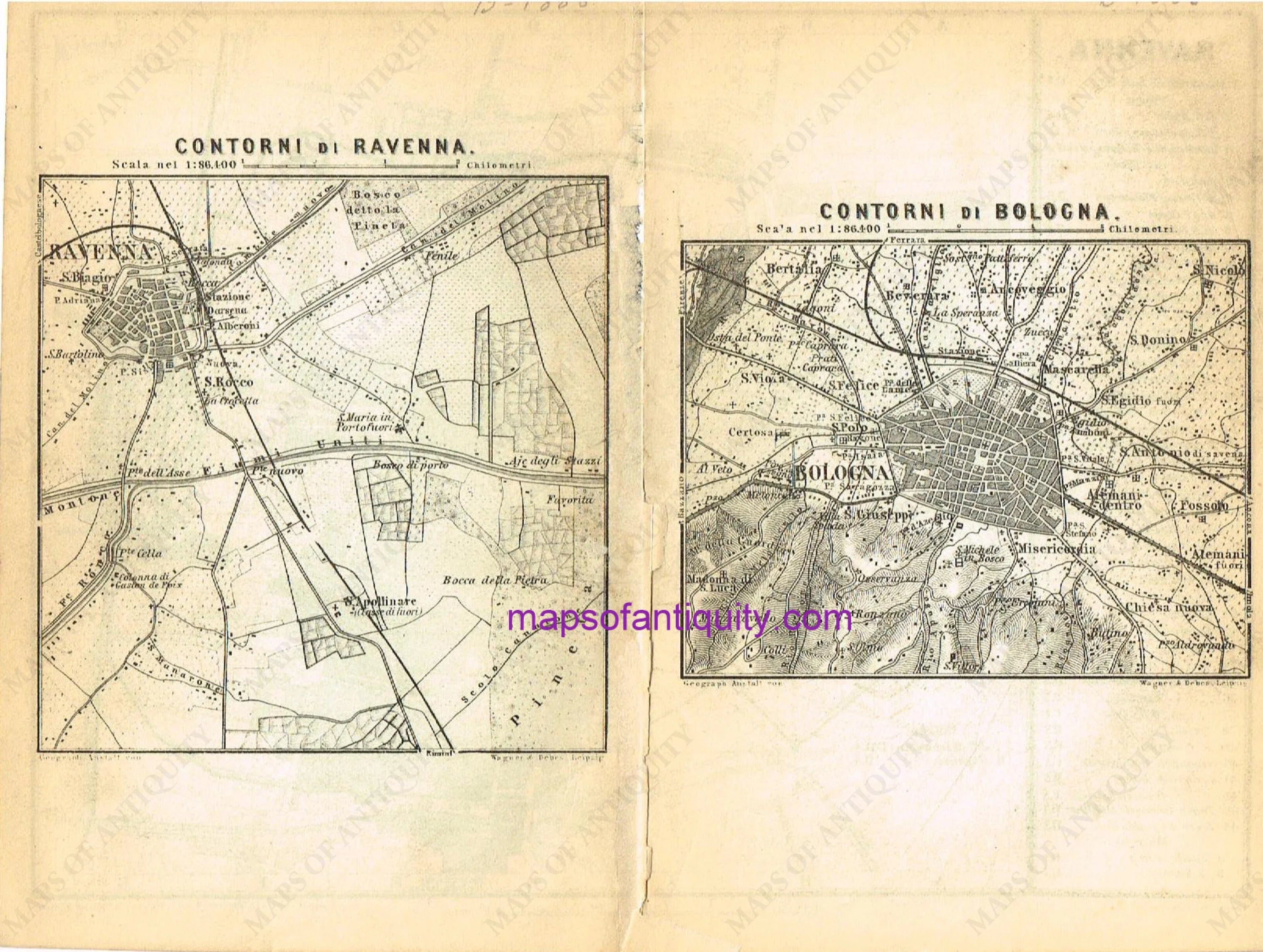 1886 - Ravenna and Bologna - Antique Map