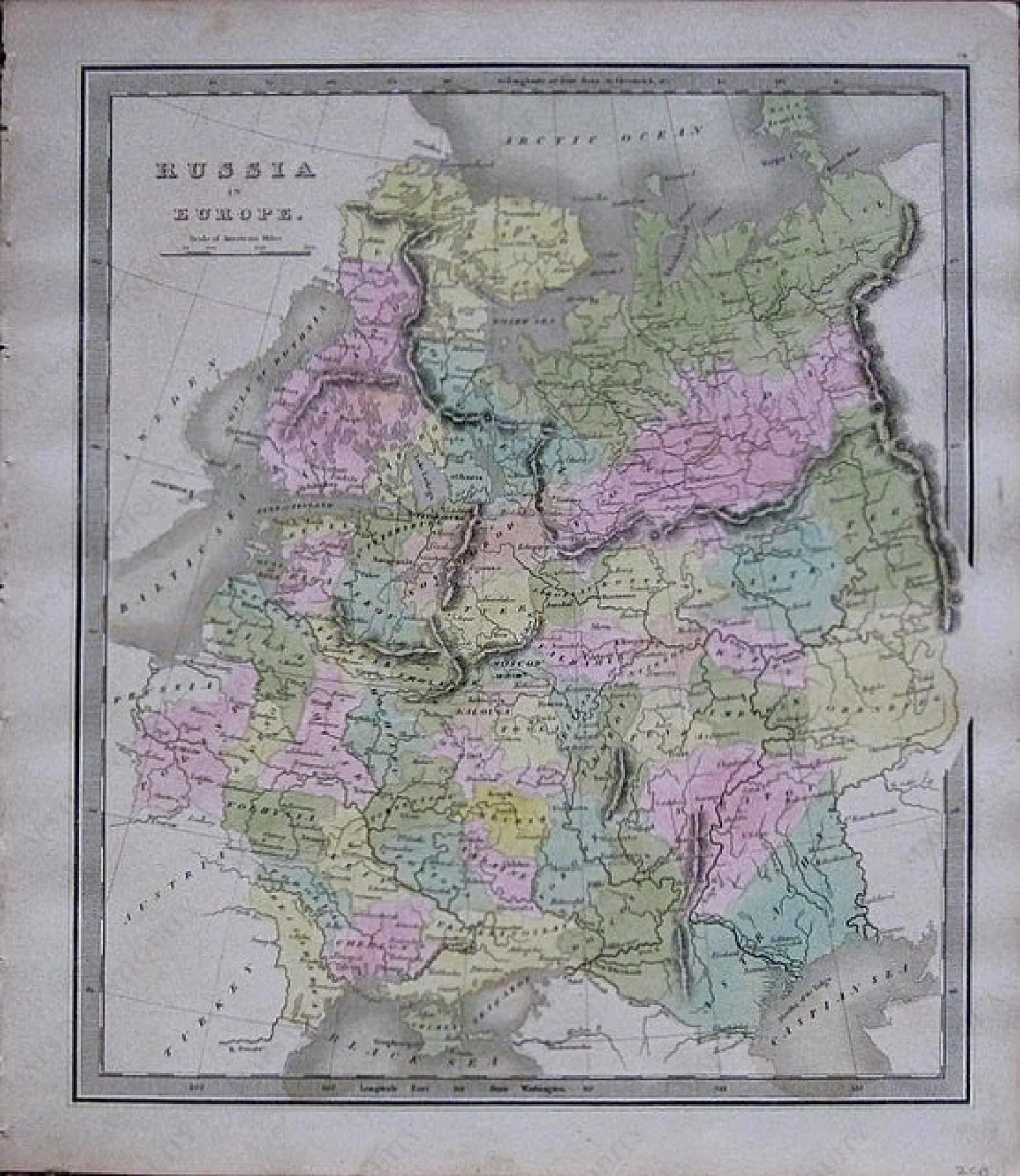 Antique hand colored map from the 1842 edition of Jeremiah Greenleaf's "A New Universal Atlas: Comprising Separate Maps Of all the Principal Empires, Kingdoms, & States Throughout the World: and forming a distinct Atlas of the United States. Carefully Compiled from the best Authorities Extant by Jeremiah Greenleaf. a new edition revised and corrected to the present time 1842." Political boundaries delineated by color, and with details of cities and towns, rivers and water bodies, some mountains and landforms. Very good condition, some toning, 12.75 x 11 inches.