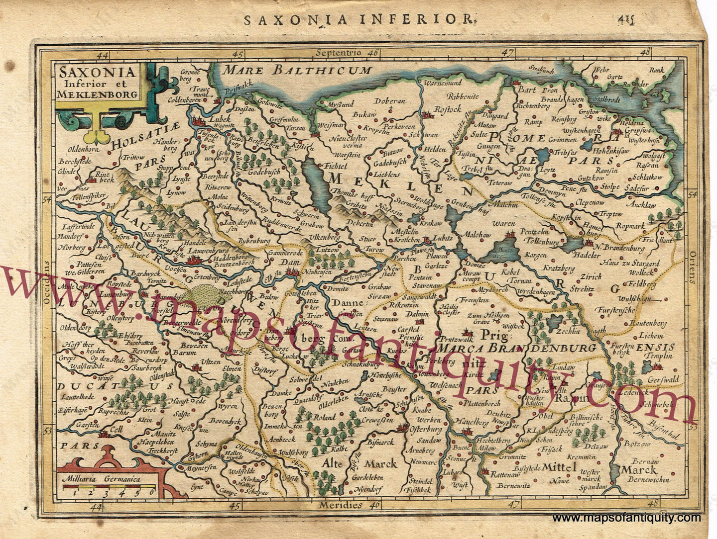 Antique-Hand-Colored-Map-Saxonia-Inferior-et-Meklenborg-(Germany)-Europe-Germany-1651-Mercator/Hondius-Maps-Of-Antiquity