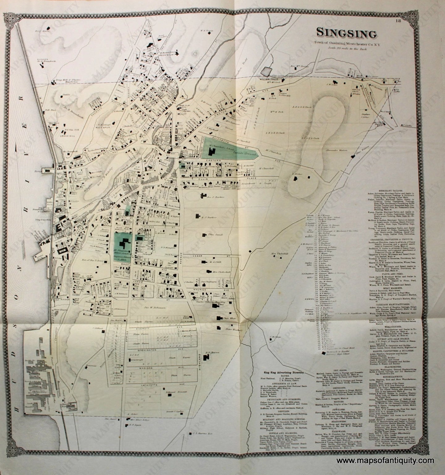 Antique-Hand-Colored-Map-Singsing-Town-of-Ossining-Westchester-Co.-N.Y.-United-States-Northeast-1867-Beers-Maps-Of-Antiquity
