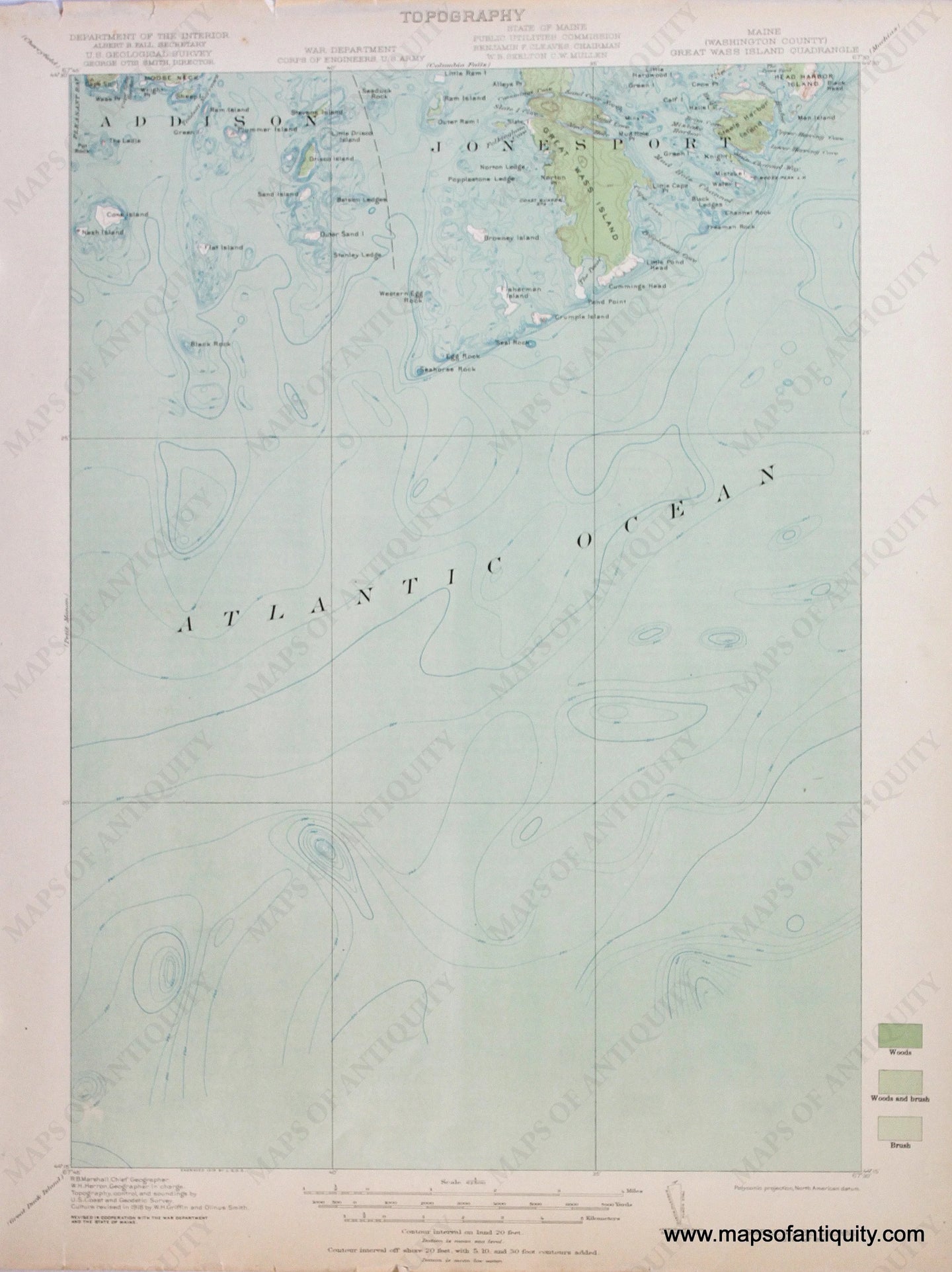 Genuine-Antique-Map-Great-Wass-Island-Maine--1921-US-Geological-Survey--Maps-Of-Antiquity