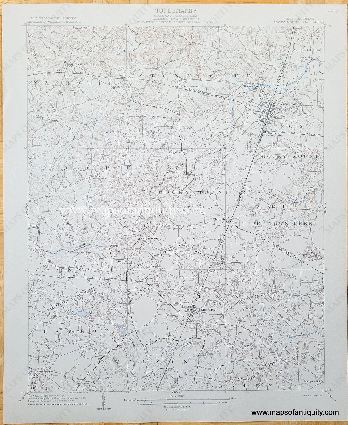 Genuine-Antique-Topographic-Map-North-Carolina-Rocky-Mount-Quadrangle-1904-US-Geological-Survey-Maps-Of-Antiquity