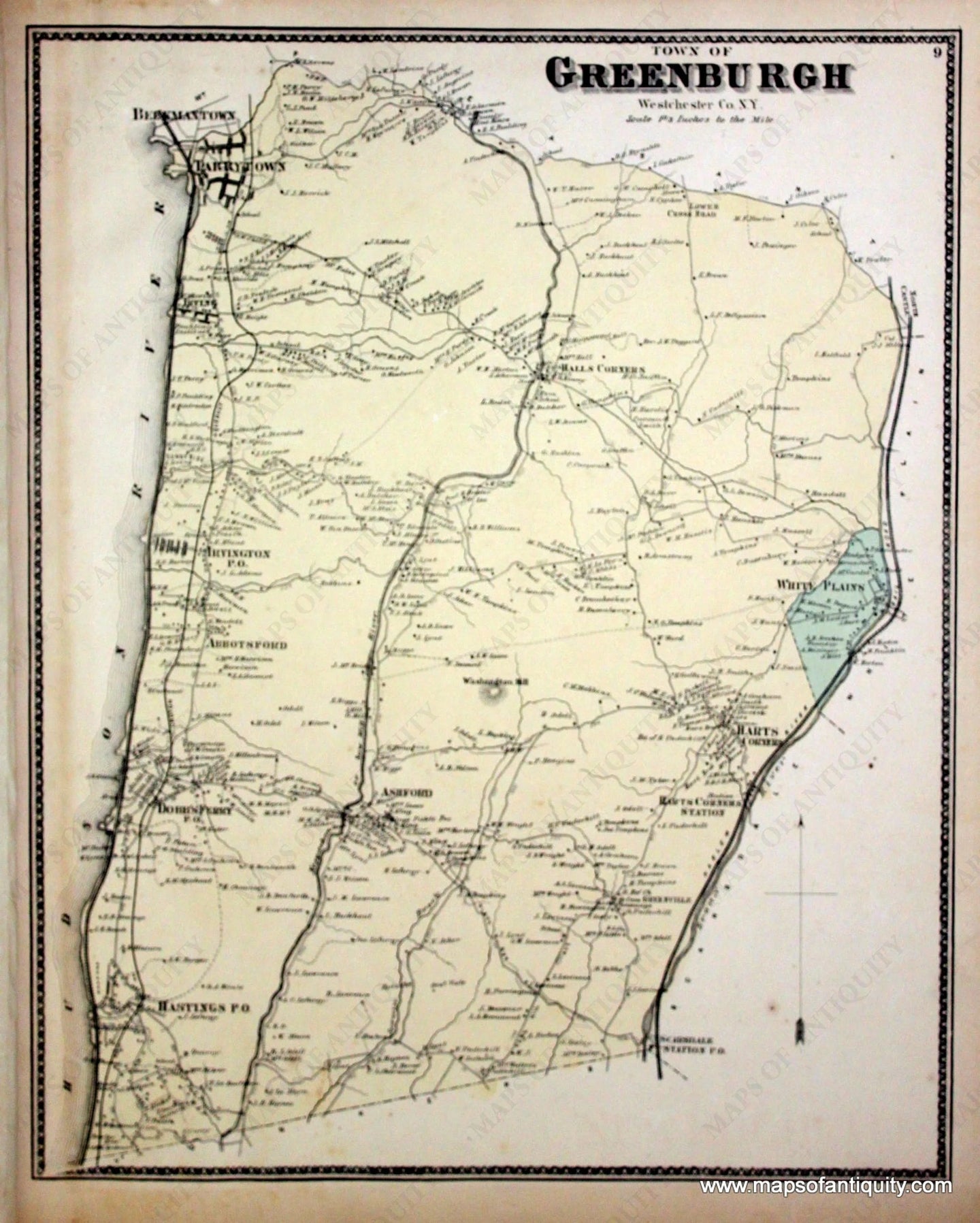 Antique hand colored map from the Atlas of New York and Vicinity, by Beers, 1867. Very good overall antique condition, approx. 16 x 13 inches.